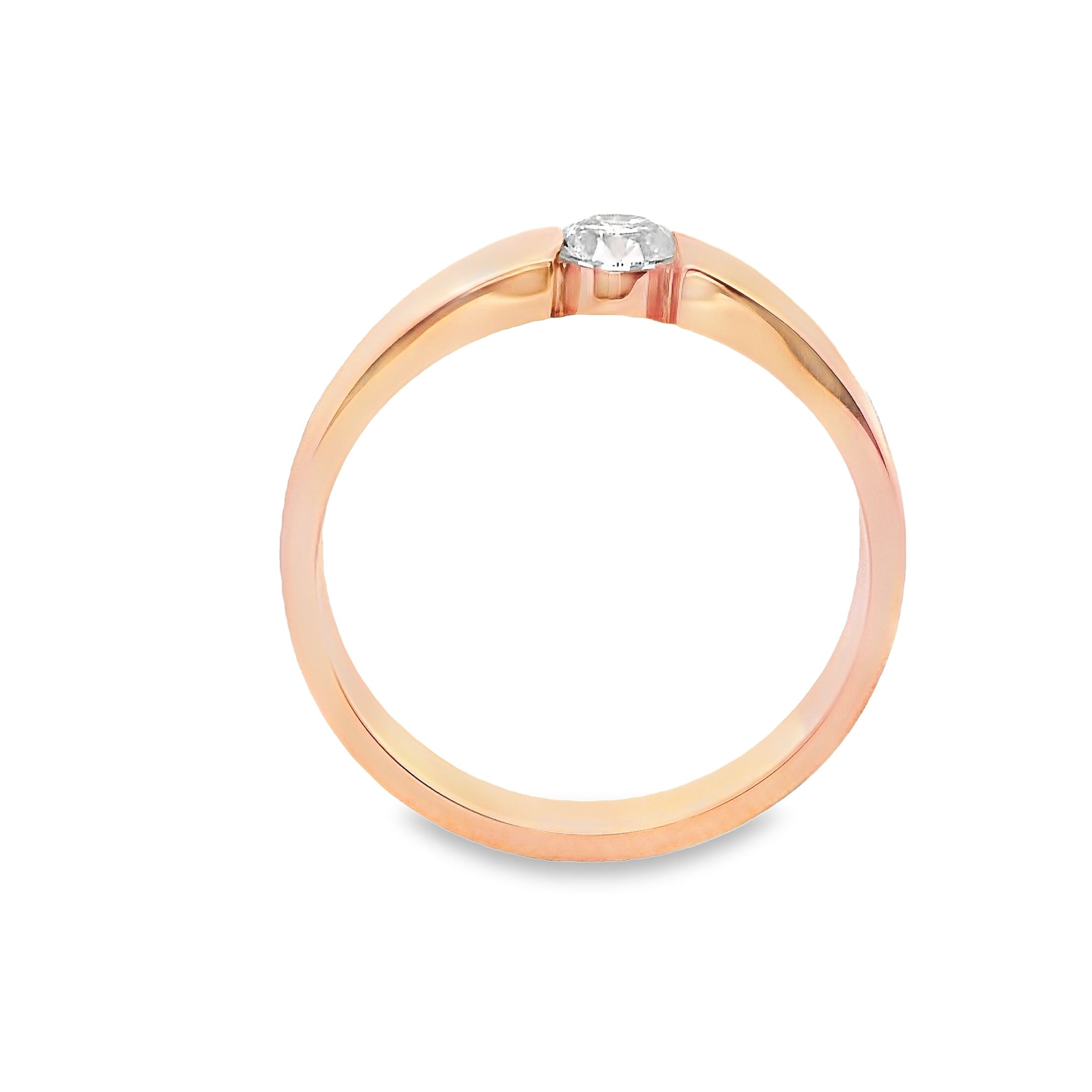 Deze prachtige ring van Louis Bros is vervaardigd uit 14 karaat  roségoud (3.90 gr) en is gezet met 1 briljant geslepen diamanten met een totaalgewicht van 0.25 crt. Een roségouden ring straalt een warme en romantische uitstraling uit, terwijl het diamantje een vleugje sprankeling toevoegt. De combinatie van het roségoud en de schitterende diamant creëert een uniek en elegant sieraad. Deze ring is perfect voor iemand die houdt van subtiele luxe en verfijning. Of het nu als cadeau is of gewoon om jezelf te verwennen, een roségouden ring met een diamantje zal zeker de aandacht trekken en een blijvende indruk maken.