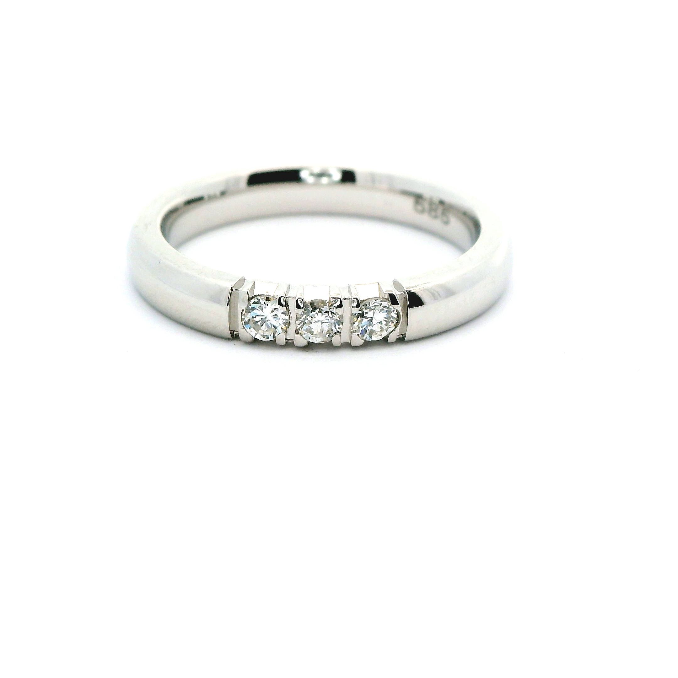 Deze ring van Louis Bros is vervaardigd uit 14 karaat witgoud (4.05 gr) en is gezet met 3 briljant geslepen diamanten met een totaalgewicht van 0.15 crt. Deze prachtige ring straalt elegantie en verfijning uit. Het witgoud geeft de ring een tijdloze uitstraling, terwijl de 3 diamanten voor een schitterende en sprankelende touch zorgen. Het is een perfect sieraad om te dragen bij speciale gelegenheden of gewoon als een dagelijkse blikvanger. Met deze ring om je vinger voel je je ongetwijfeld bijzonder en stralend. Het is een prachtig cadeau voor jezelf of iemand die je dierbaar is.
