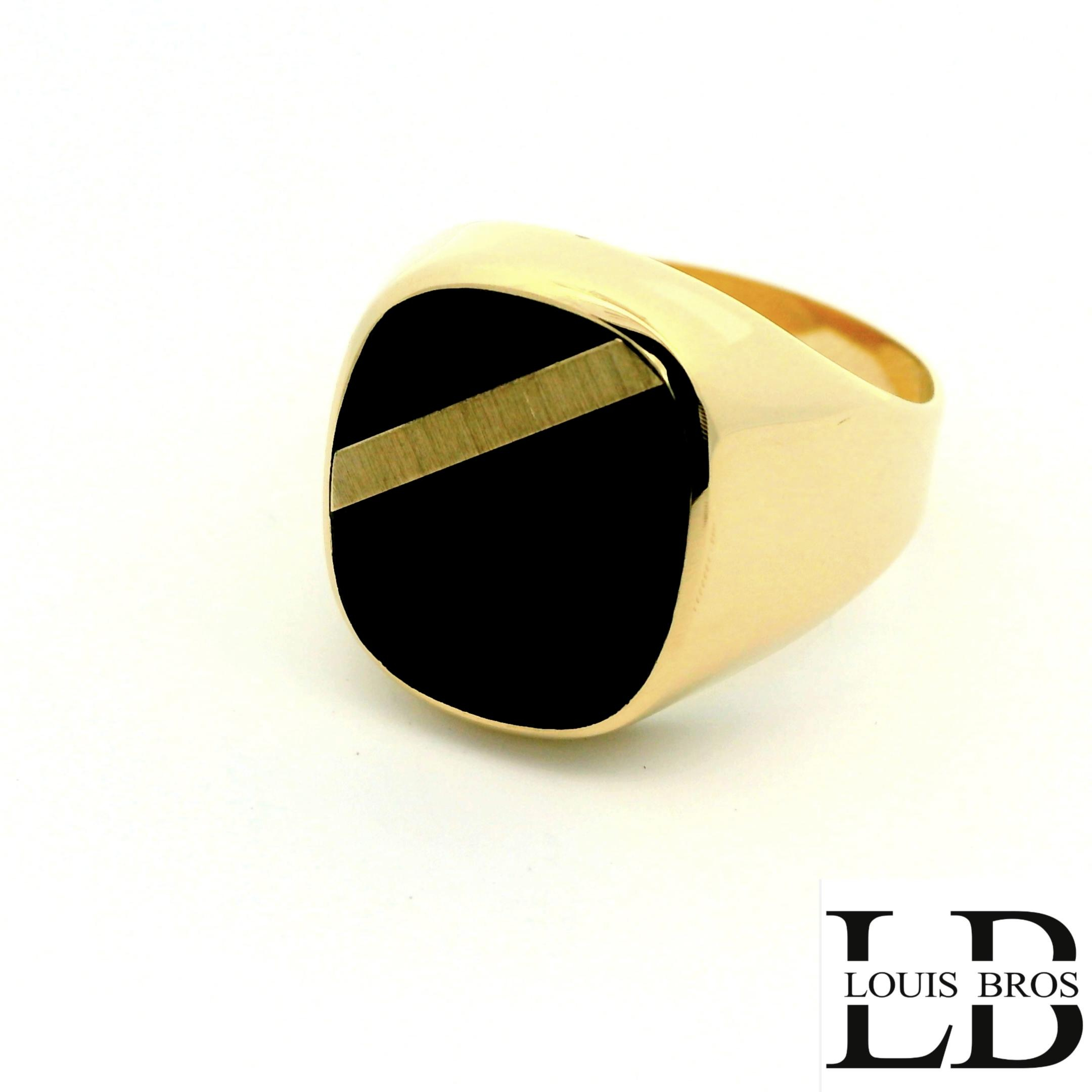 Deze klassieke heren zegelring van geelgoud (6.78 gr) straalt kracht en tijdloze elegantie uit. Centraal staat een zware, diepzwarte onyx die de ring een robuust en statig karakter geeft. Het traditionele ontwerp met strakke lijnen en een solide vormgeving benadrukt de mannelijke uitstraling van het sieraad. Dankzij het klassieke design is deze zegelring een blijvend symbool van stijl en persoonlijkheid, perfect voor dagelijks dragen of formele gelegenheden. Een karaktervolle ring voor de man die waarde hecht aan vakmanschap en traditie.