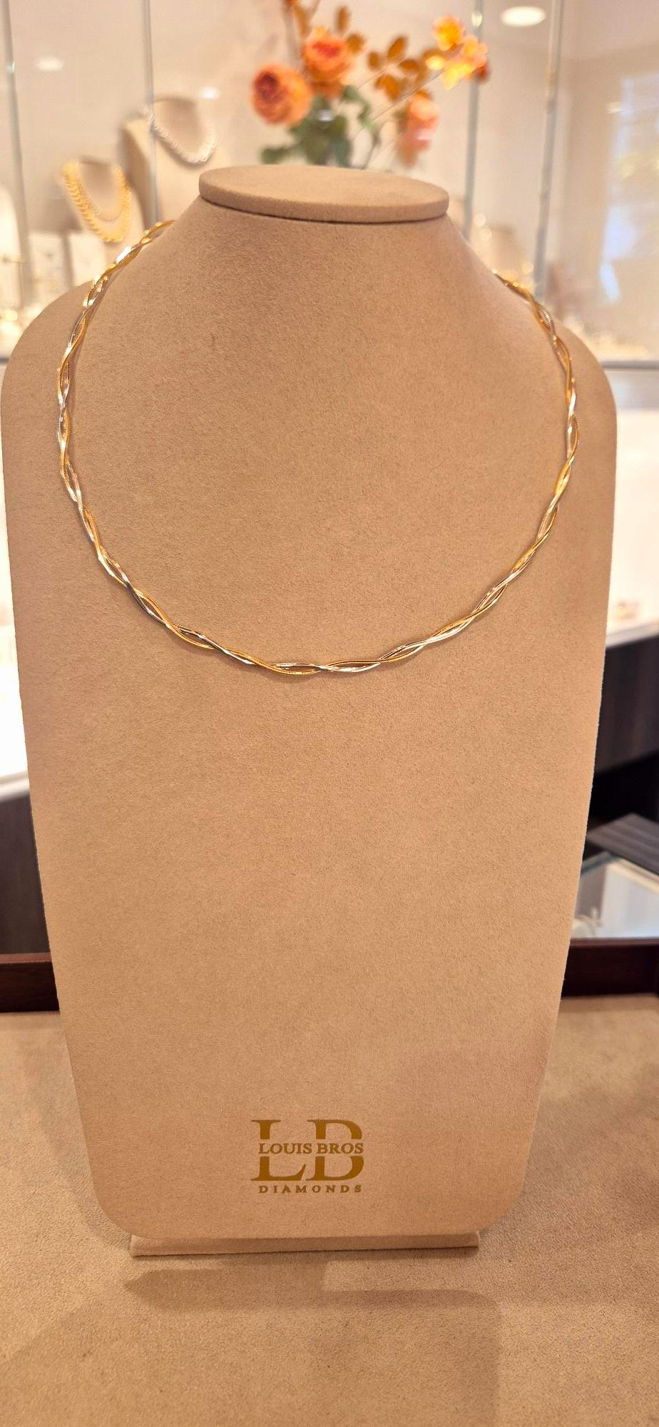 De harmonieuze combinatie van geel- en witgoud geeft dit collier een chique en tijdloze uitstraling die moeiteloos bij elke stijl en gelegenheid past. Dankzij het slimme ontwerp draag je in feite twee colliers in één – ideaal voor wie houdt van variatie en stijl.