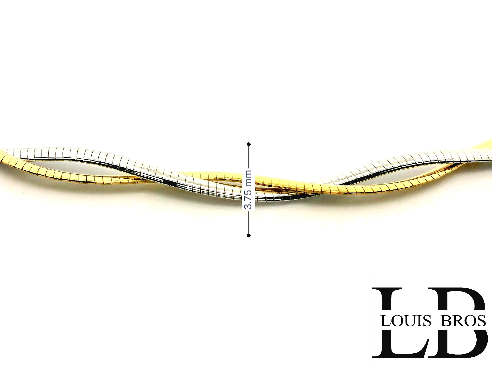 Dit bijzondere omega collier is een waar pronkstuk, vervaardigd uit 14 karaat bicolor goud (8,90 gram). Het collier heeft een uniek en veelzijdig ontwerp, want het is aan beide kanten draagbaar.