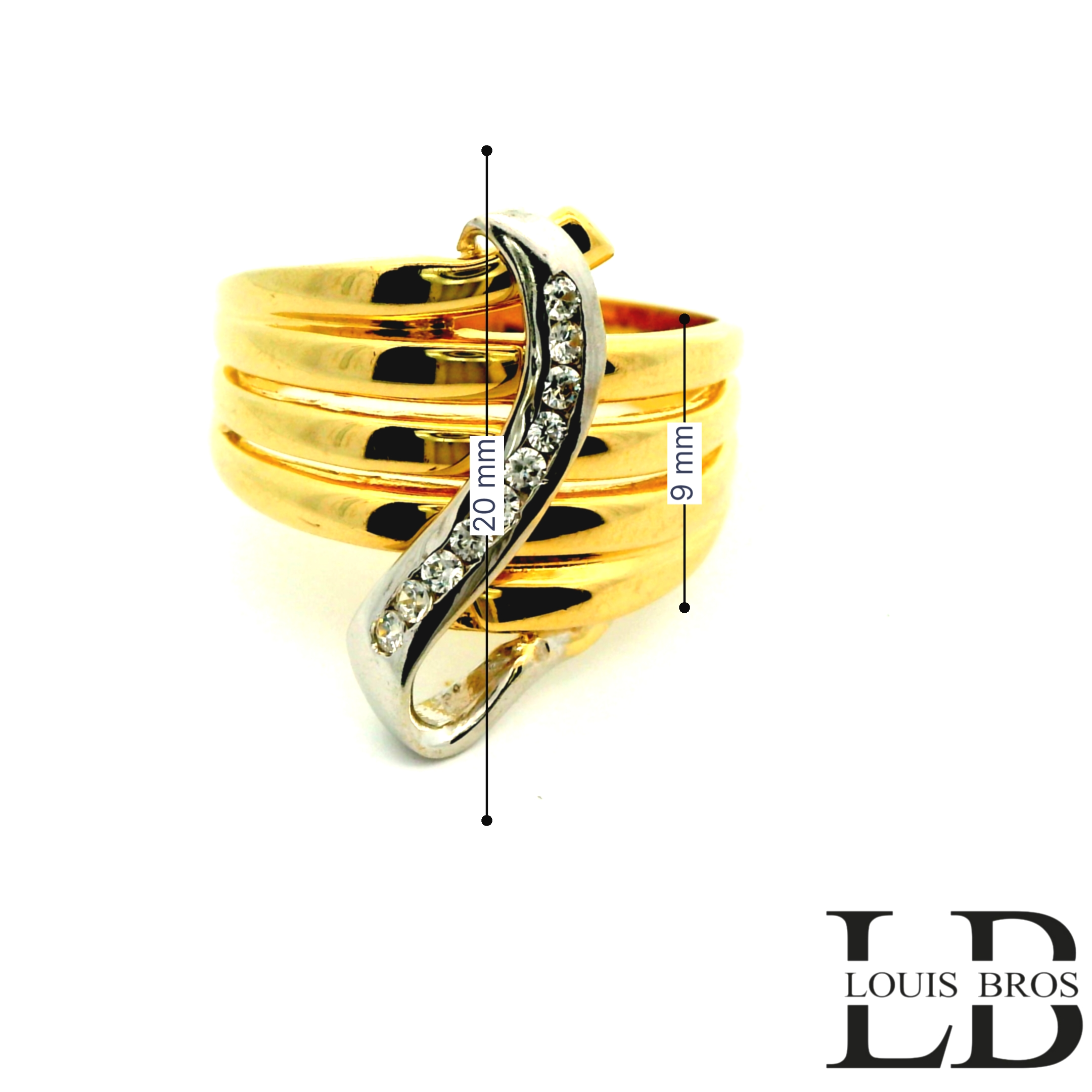 Deze prachtige bicolor ring van 14 karaat goud (5.13 gr) combineert het beste van twee werelden: het warme geelgoud en het elegante witgoud. De subtiele samensmelting van beide kleuren zorgt voor een tijdloze en moderne uitstraling. In het midden schitteren fijn gezette zirkonias, die de ring een luxueuze glans en verfijnde uitstraling geven.