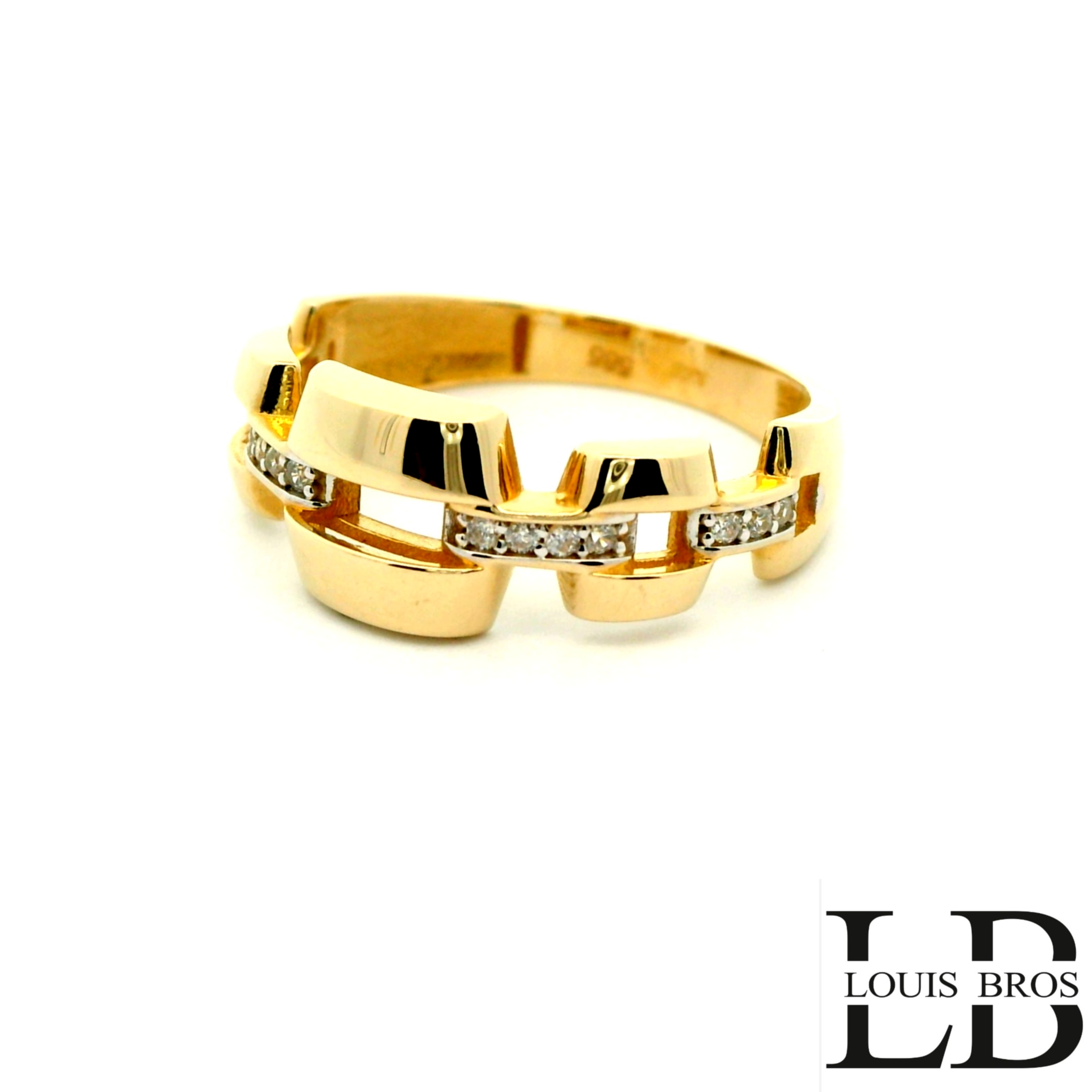 Deze verfijnde damesring is vervaardigd uit 14 karaat geelgoud (2.73 gr) en bezet met sprankelende zirkonia’s die het licht op een subtiele manier weerkaatsen. Het tijdloze design straalt elegantie en eenvoud uit, waardoor deze ring moeiteloos bij elke stijl en gelegenheid past.