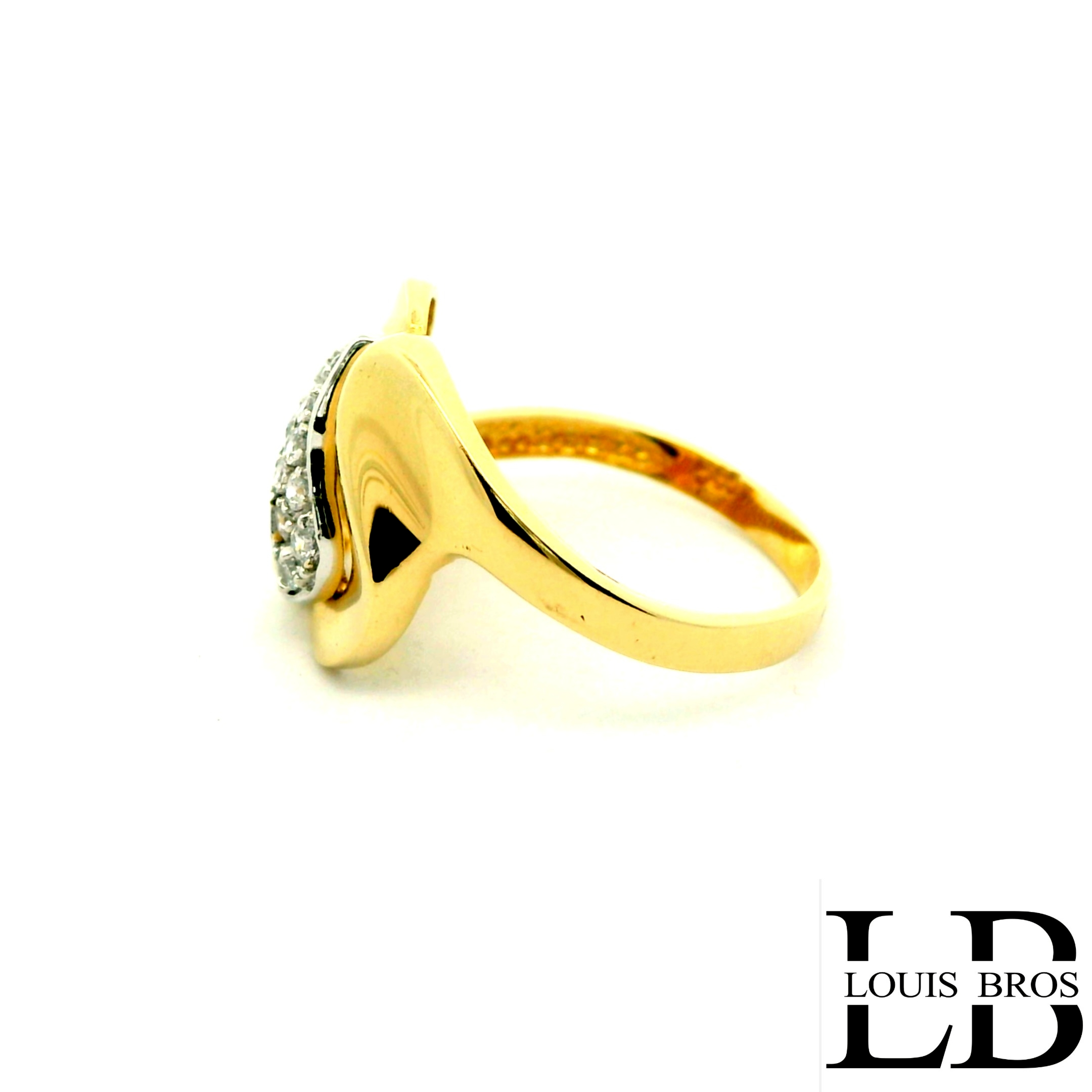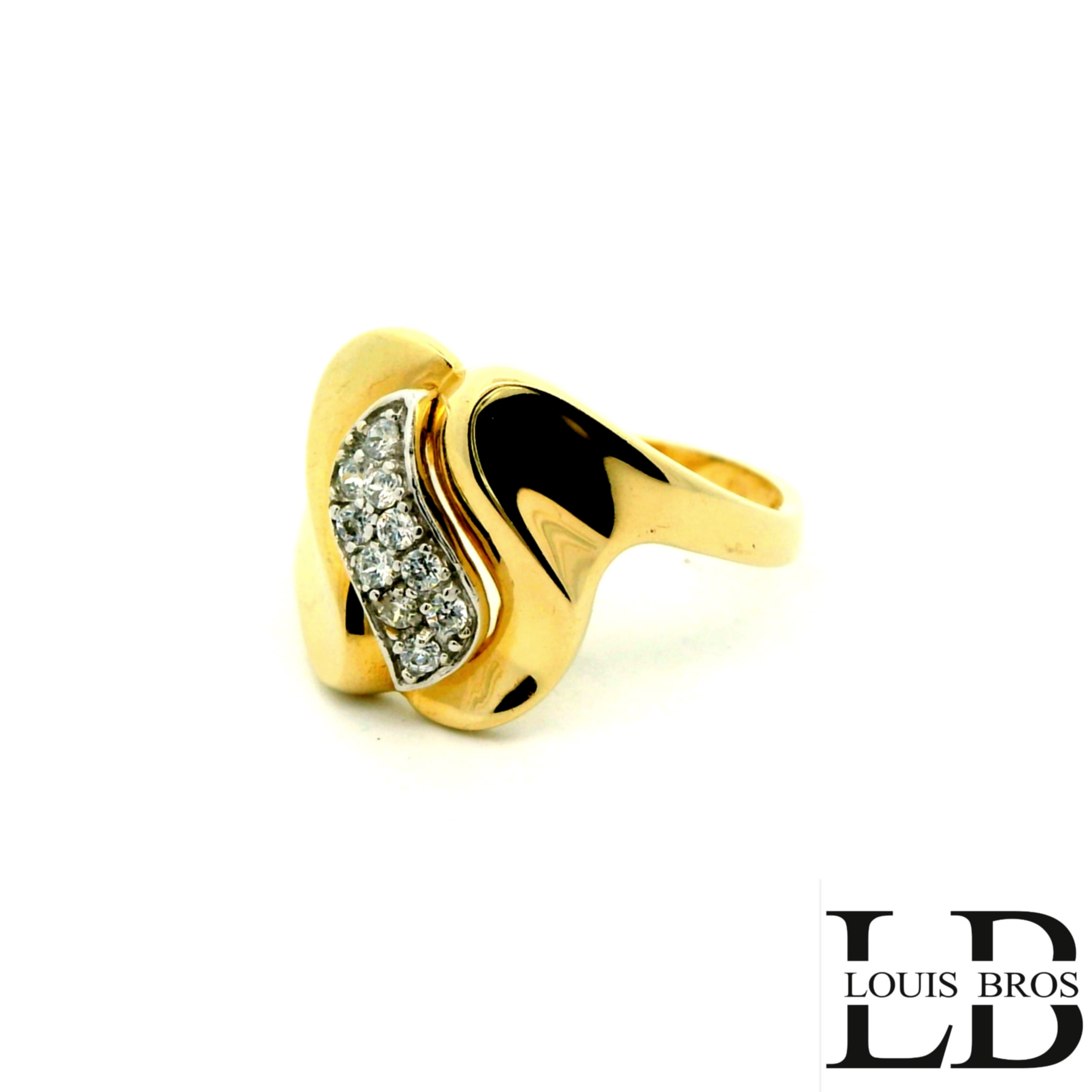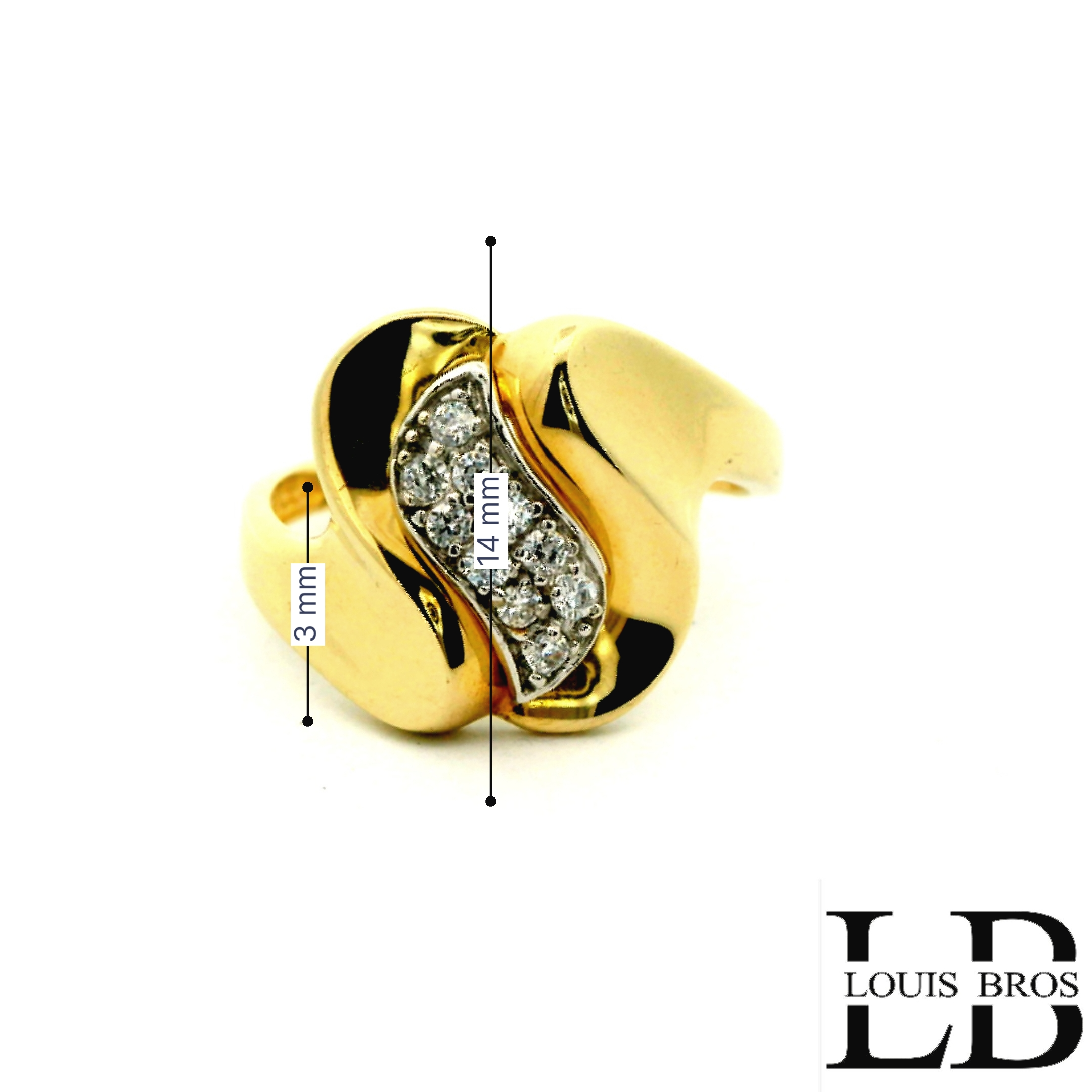 Deze prachtige damesring is vervaardigd uit 14 karaat geelgoud (2.76 gr) en bezet met fonkelende zirkonia’s die het licht op een schitterende manier weerkaatsen. De warme gloed van het goud in combinatie met de sprankelende stenen zorgt voor een chique en stijlvolle uitstraling.