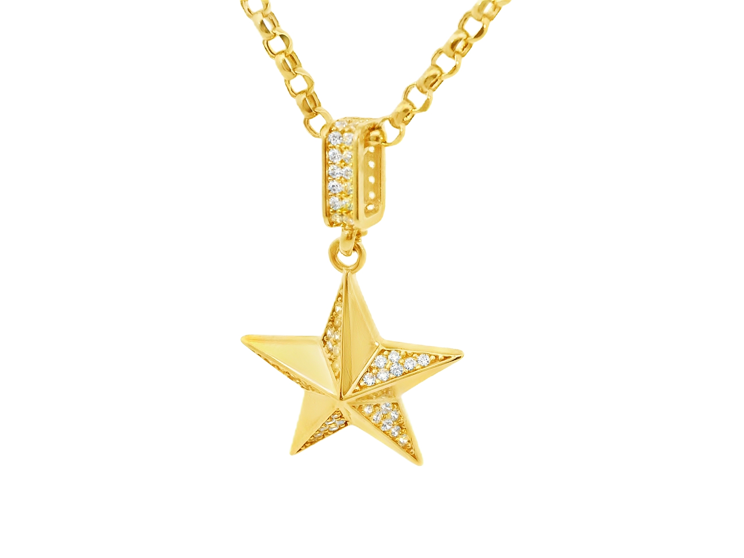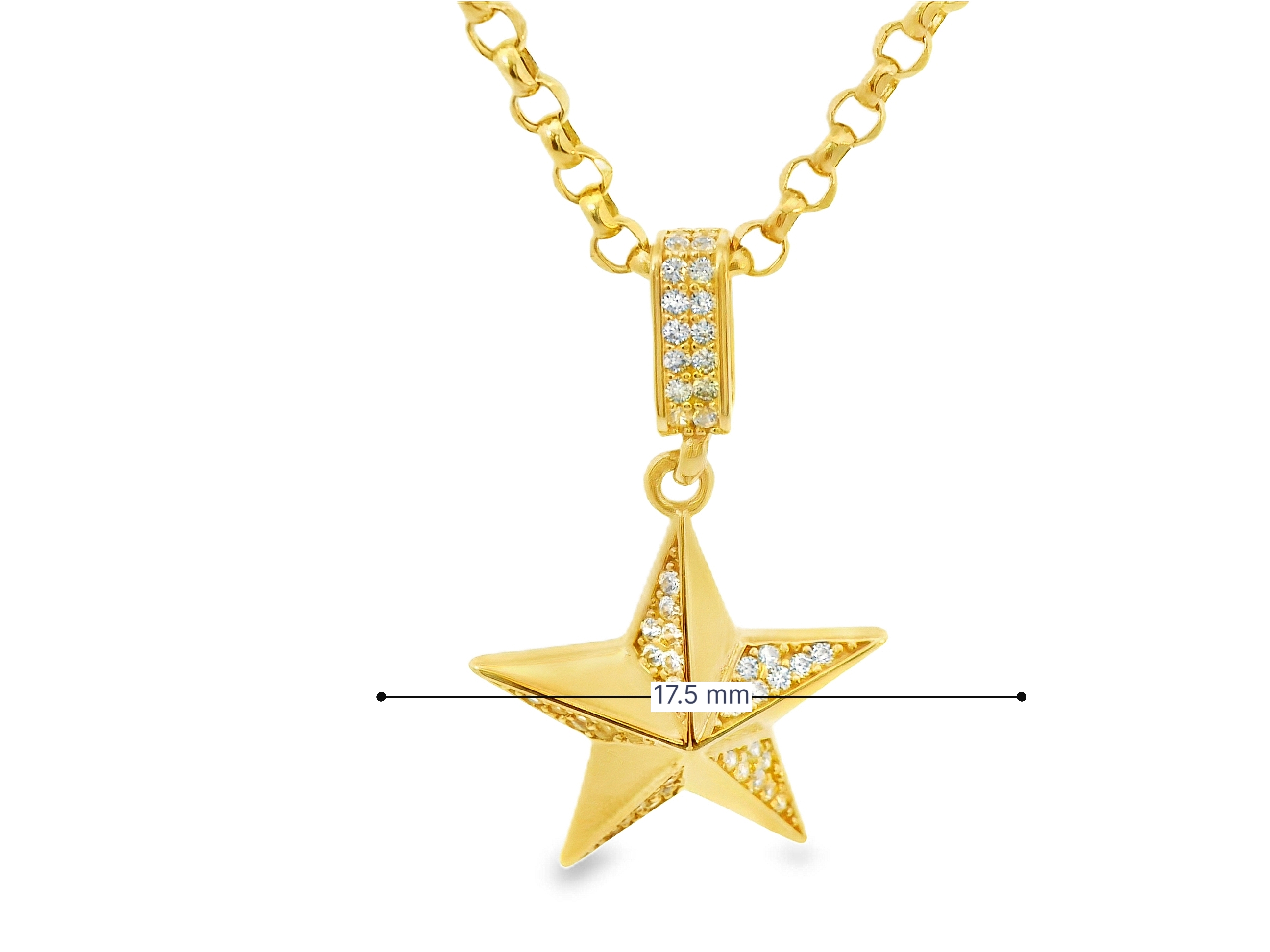 Deze stijlvolle hanger is uitgevoerd in 14 karaat geelgoud (2.12 gr) en heeft een elegante stervorm die symbool staat voor licht, kracht en inspiratie. De ster is bezet met fonkelende zirkonia’s die het sieraad laten schitteren bij elke beweging.