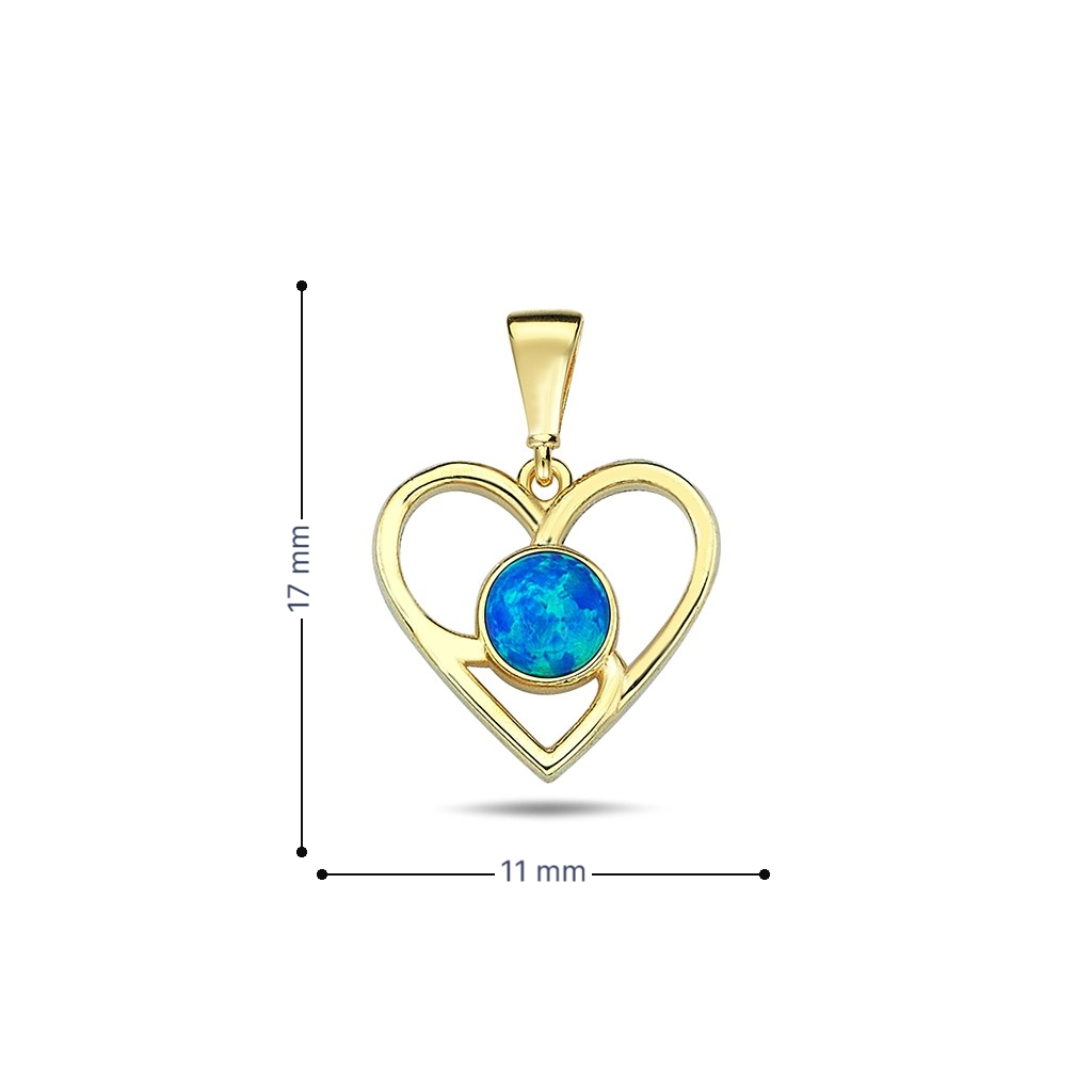 Deze elegante hanger is vervaardigd uit hoogwaardig 14 karaat geelgoud en heeft een verfijnd open hartdesign. In het midden schittert een prachtige synthetische opaal, die met zijn levendige blauwe en groene kleurnuances een speels en luxe effect geeft. De combinatie van het warme goud en de iriserende opaal zorgt voor een tijdloze en romantische uitstraling. Dankzij het subtiele ontwerp is deze hanger perfect om dagelijks te dragen, maar ook bijzonder geschikt als betekenisvol cadeau.