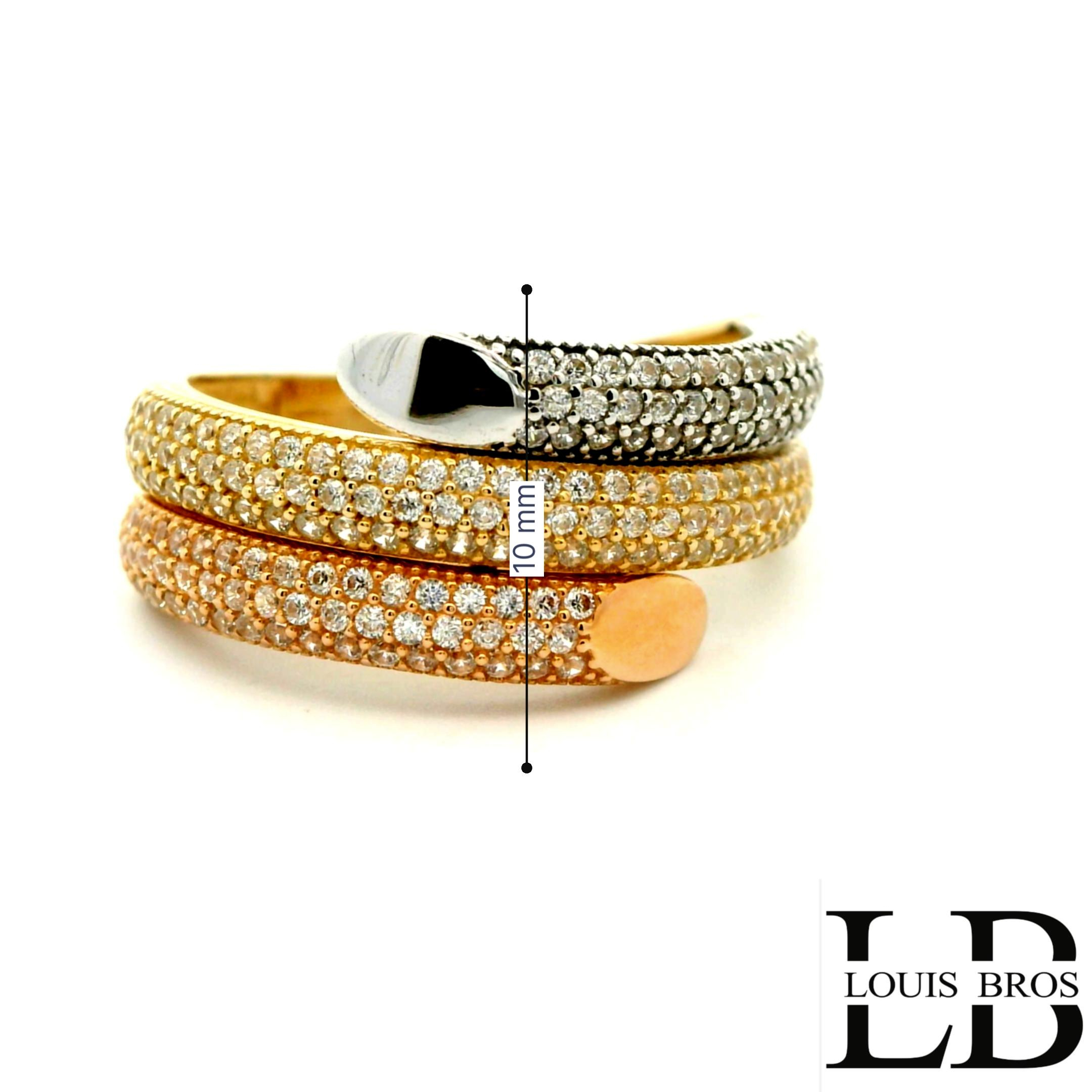 Deze tricolor ring past moeiteloos bij andere sieraden, ongeacht hun goudkleur, en is perfect voor elke gelegenheid – van dagelijks gebruik tot een feestelijke avond. Een tijdloos sieraad dat elegantie en klasse uitstraalt.