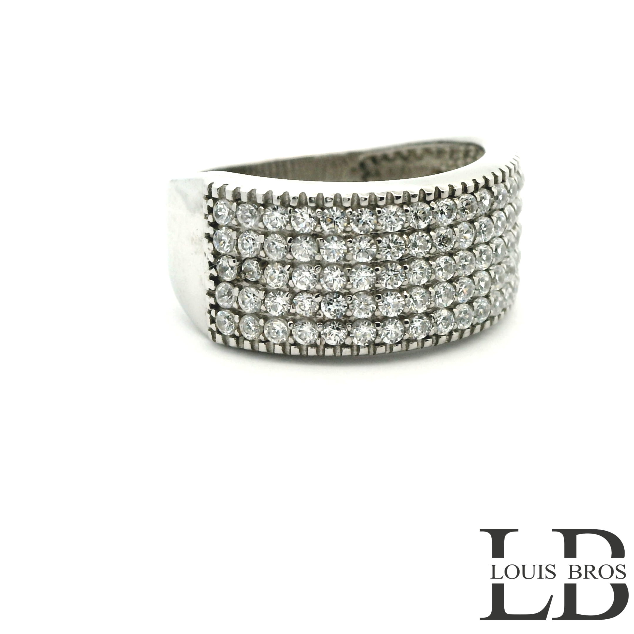 Deze 14 karaat witgouden ring (5.80 gr) heeft een stijlvolle en moderne uitstraling. De ring is verfijnd uitgevoerd en bezet met fonkelende zirkonia’s die zorgen voor een heldere, luxe glans. Het koele witgoud accentueert de stenen op elegante wijze en geeft de ring een tijdloos karakter. Een prachtig sieraad dat zowel dagelijks als bij speciale gelegenheden gedragen kan worden.