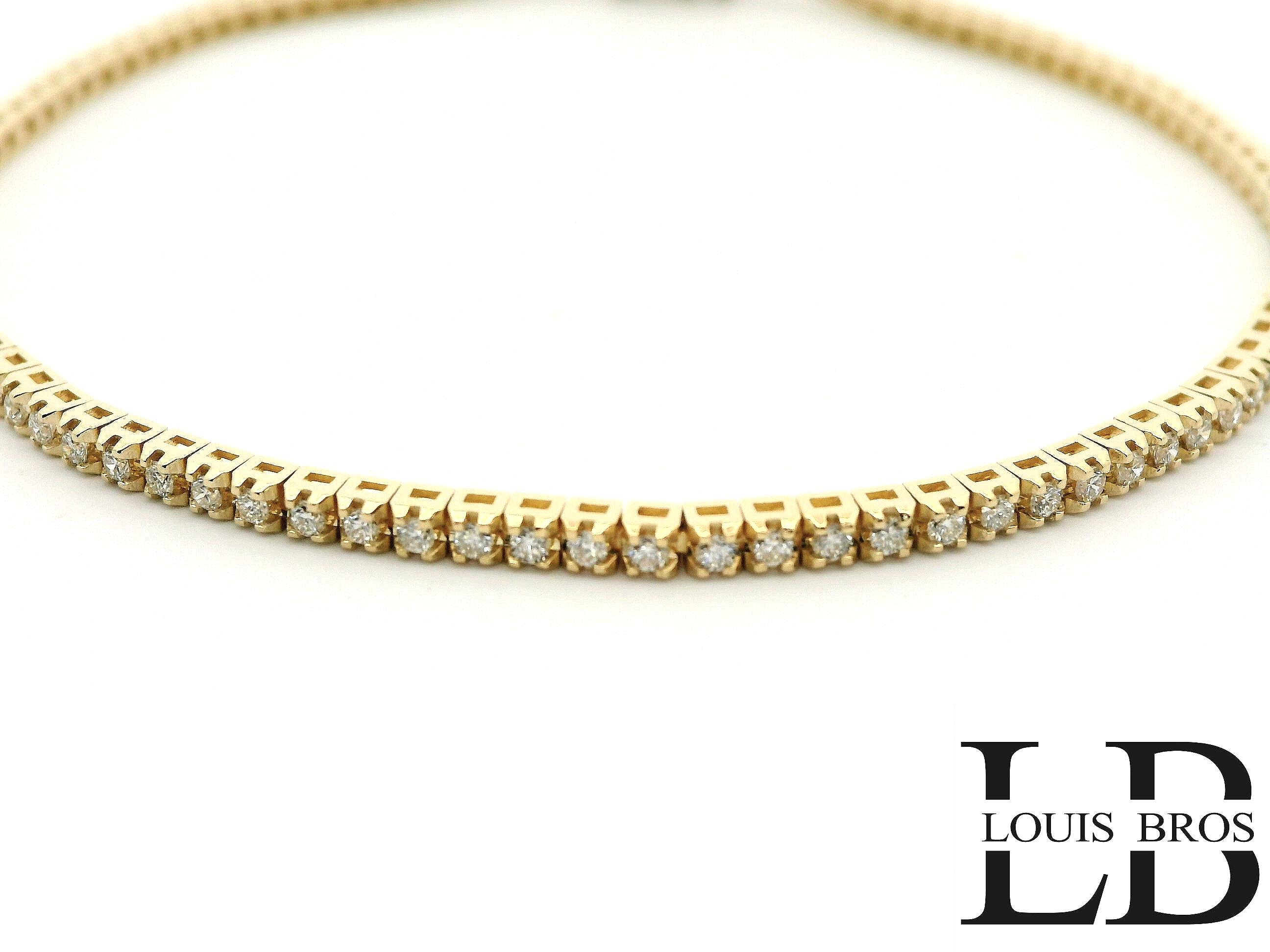 Deze exclusieve tennisarmband is vervaardigd uit hoogwaardig 18 karaat geelgoud (6.36 gr) en bezet met maar liefst 100 natuurlijke diamanten. Samen vormen de diamanten een indrukwekkend totaalgewicht van 1,04 karaat. De stenen zijn zorgvuldig geselecteerd in kleur E en zuiverheid VS1, wat garant staat voor een uitzonderlijke helderheid en schittering.