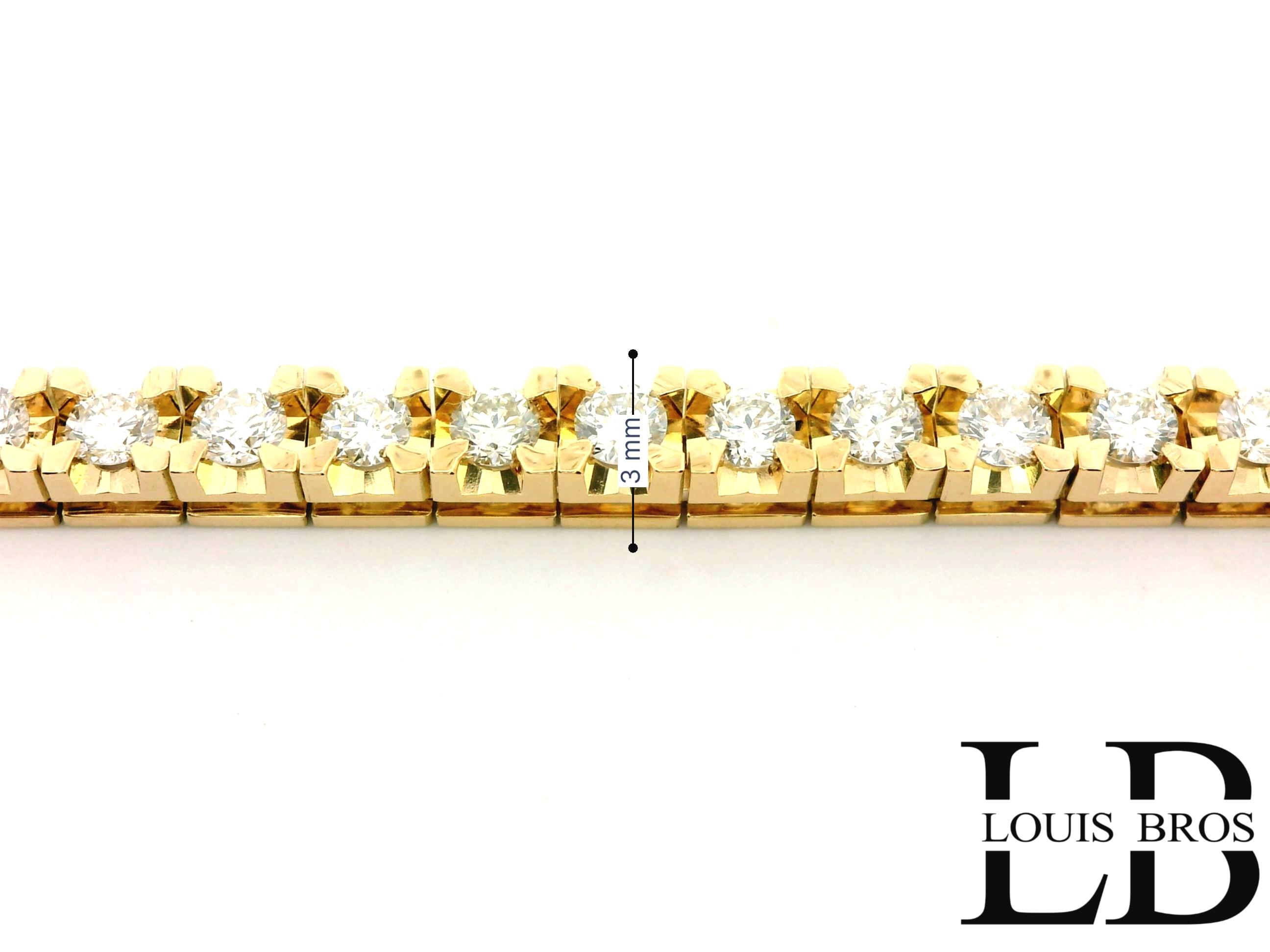 Deze exclusieve tennisarmband is vervaardigd uit hoogwaardig 18 karaat geelgoud (11.44 gr) en bezet met maar liefst 59 natuurlijke diamanten. Samen vormen de diamanten een indrukwekkend totaalgewicht van 2,20 karaat. De stenen zijn zorgvuldig geselecteerd in kleur E en zuiverheid VS1, wat garant staat voor een uitzonderlijke helderheid en schittering.
