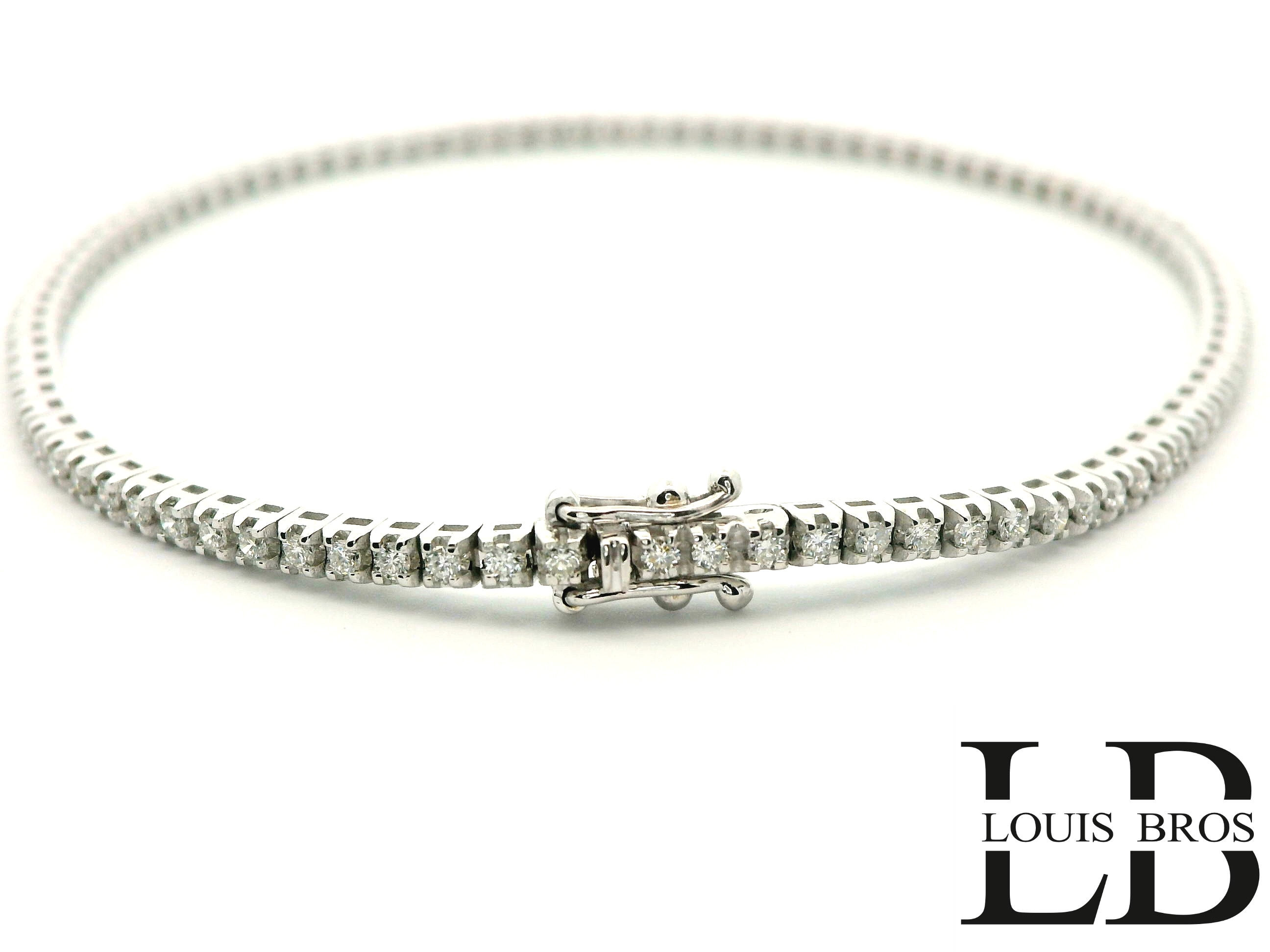 Deze exclusieve tennisarmband is vervaardigd uit hoogwaardig 18 karaat witgoud (6.39 gr) en bezet met maar liefst 94 natuurlijke diamanten. Samen hebben de diamanten een schitterend totaalgewicht van 1,00 karaat. De stenen zijn zorgvuldig geselecteerd in kleur E en zuiverheid VS1, wat zorgt voor een uitzonderlijke helderheid en een intense, luxueuze schittering.