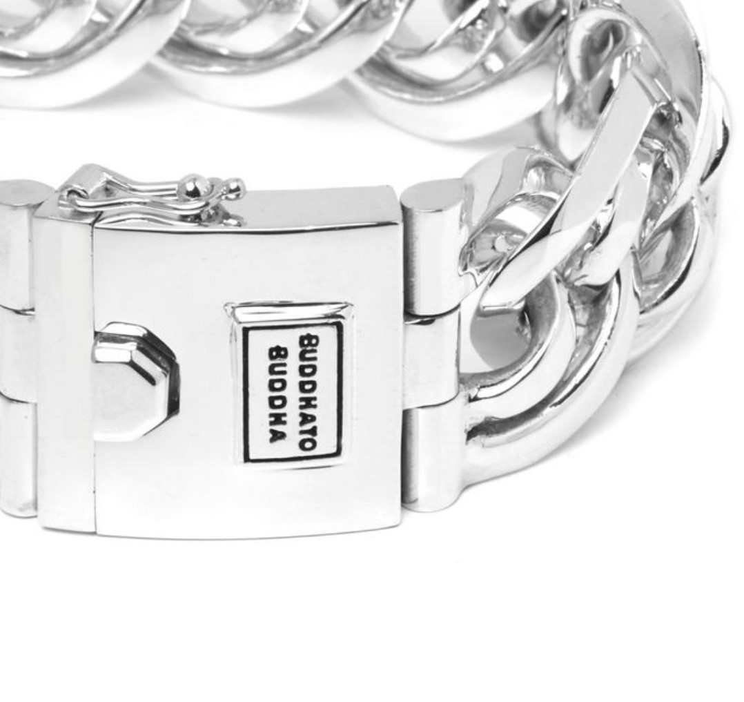 De Nathalie is een van de bekendste schakels uit de Heritage collectie. De aparte dubbele schakels die typisch zijn voor de Nathalie familie maakt deze sterling zilveren armband tot een echte blikvanger! Creëer een vlotte en stoere look met deze tijdloze en handgemaakte armband. De zilveren armband laat zich perfect combineren met andere Buddha to Buddha sieraden. De Nathalie armband is breder dan de Nathalie Small.