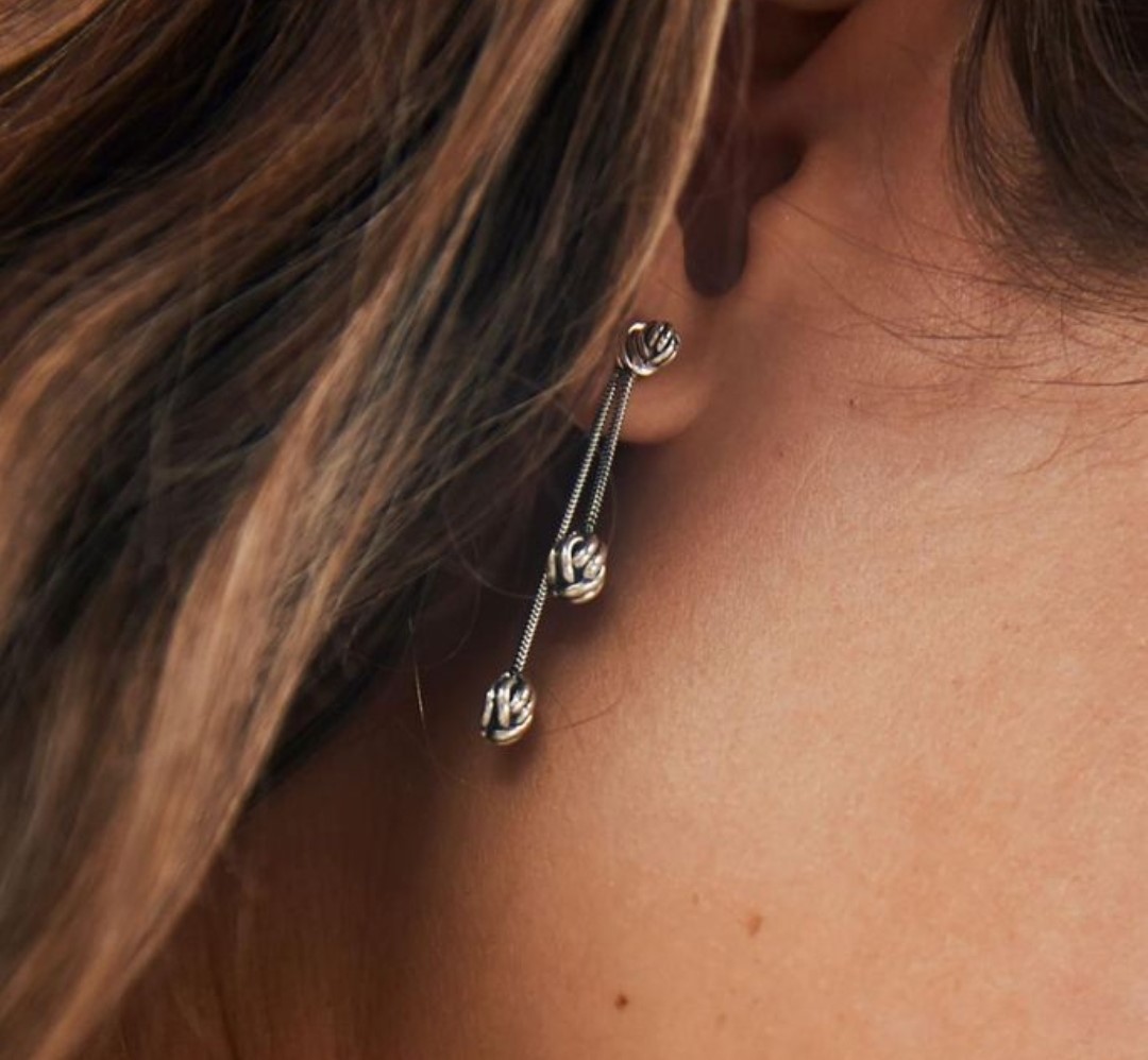 The Refined collection has a refined and elegant style and is now enriched with sterling silver ear hangers! Do you like to mix and match? These triple drop ear hangers are playful in the way you can wear them; as an ear stud or as an ear hanger. You can create an entirely new look every day. The distinctive and well-known silver Katja design is now integrated in a beautiful Refined earring and makes a bold yet sophisticated statement.