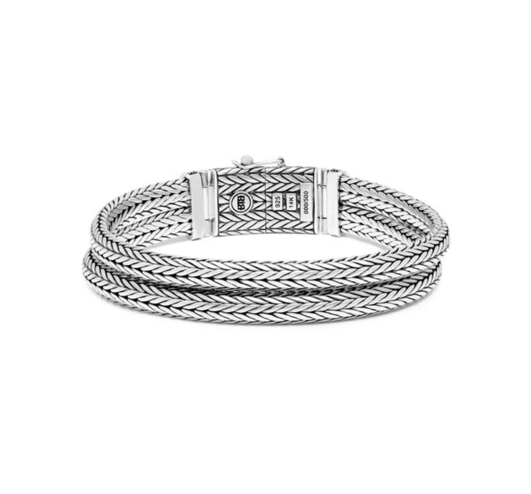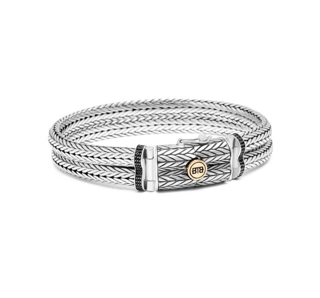 De Ellen familie is een van de verfijnde schakelarmbanden in onze collectie met een subtiele schakel. Deze genummerde limited edition is een stoere armband voor zowel mannen en vrouwen. Een sterling zilveren band met gouden details en spinel stenen. Spinel zorgt voor verbinding met aarde energie. De Ellen Double armband is gevlochten met maar liefst 8 draden en kost een ervaren goudsmid maar liefst 2 volle dagen om te maken.
