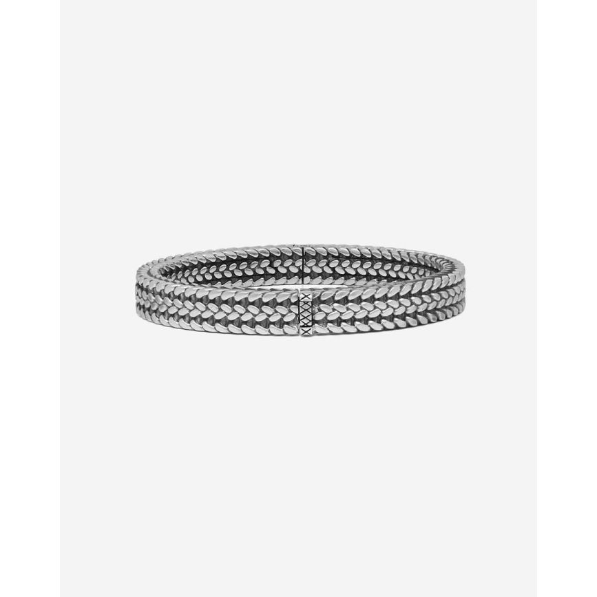 De Manchet Julius armband is een stoere en trendy toevoeging aan onze welbekende Heritage collectie. Het gedetailleerde ontwerp is gebaseerd op traditionele Balinese weeftechnieken. Deze armband is stevig en tijdloos en maakt elke outfit compleet. De Julius-familie bestaat uit drie armbanden en twee soorten ringen, allemaal handgemaakt en gemaakt van sterling zilver. Deze armband is een manchet en opent op een verborgen scharnierpunt en sluit met een slotje.