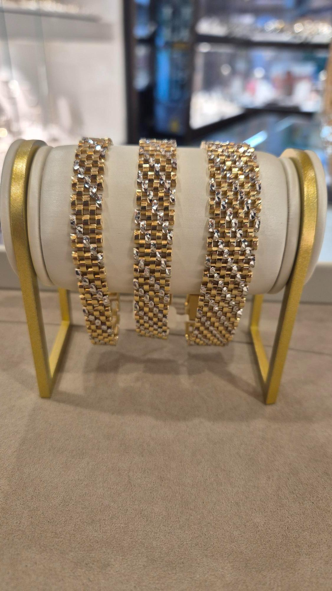 Deze armband is een prachtig voorbeeld van elegantie en verfijning. Gemaakt van een harmonieuze combinatie van wit- en geelgoud, biedt dat armband een uniek en bijzonder ontwerp dat in het oog springt. De delicate schakels en het stijlvolle contrast van de twee goudtinten maken het een sieraad dat zowel modern als tijdloos is. Perfect voor speciale gelegenheden of als een luxe dagelijkse accessoire, voegt dat armband een vleugje klasse toe aan elke outfit.