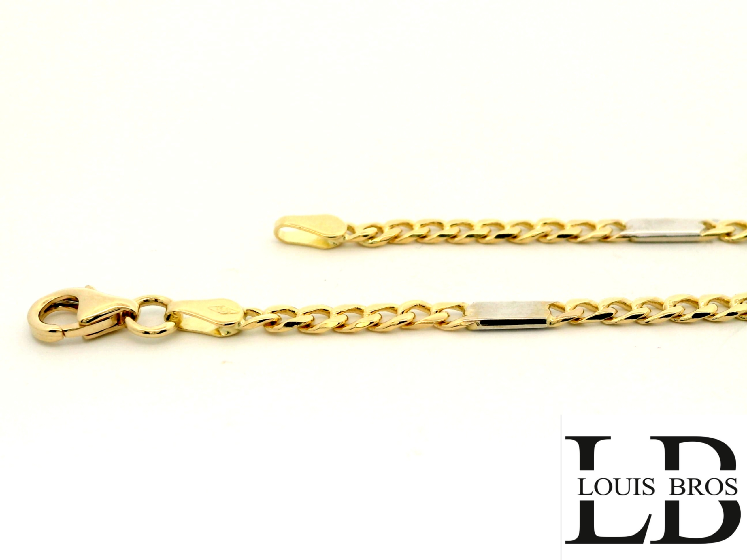 Stijlvol, tijdloos en perfect op elkaar afgestemd – deze unisex  armband set van 14 karaat bicolor goud (4.5 gr) straalt klasse en verfijning uit. De combinatie van geelgouden gourmet schakels met gepolijste witgouden tussenstukken geeft dit sieraad een moderne en luxe uitstraling.