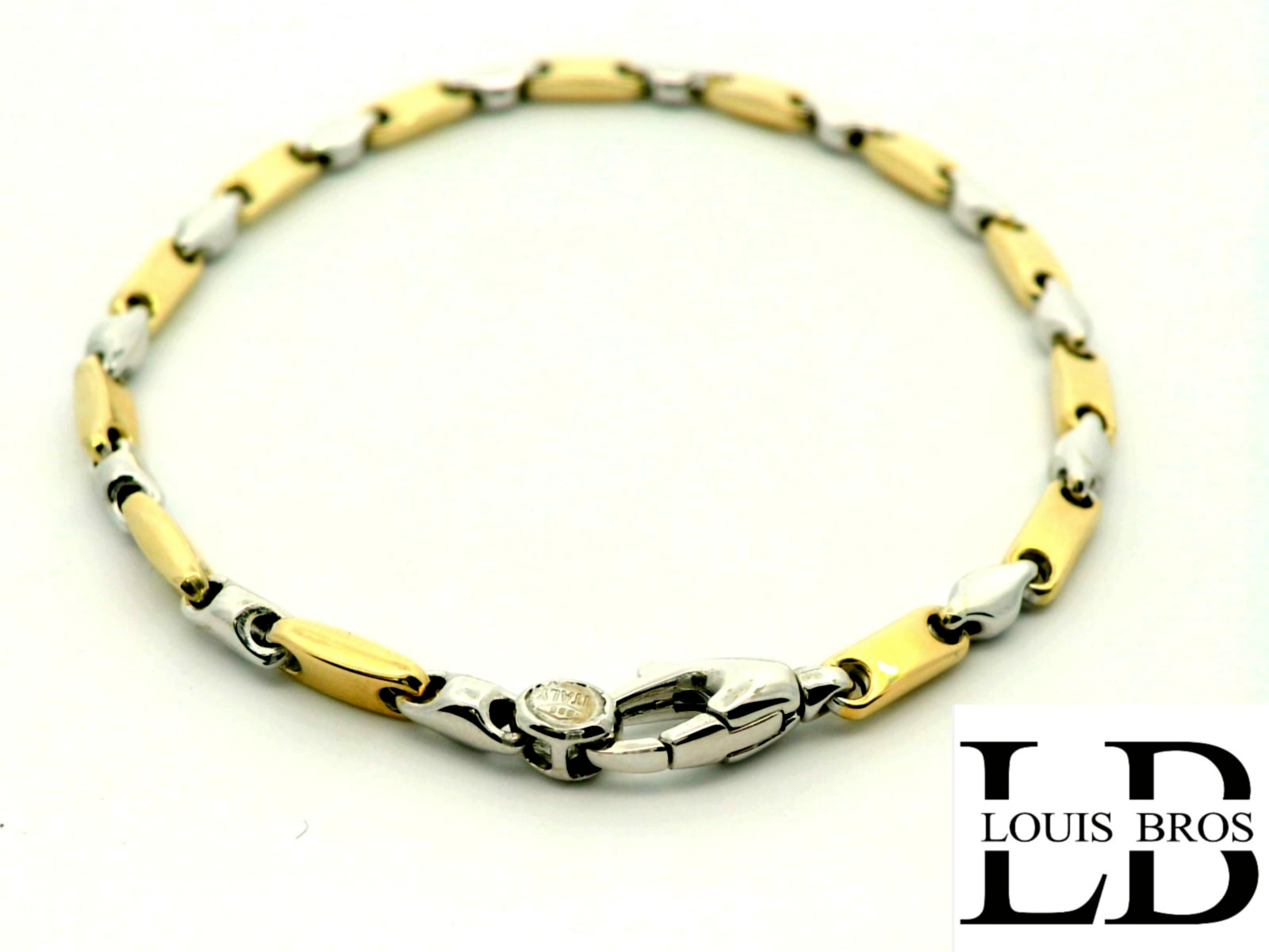 Deze prachtige armband is vervaardigd uit 14 karaat geel- en witgoud (5.64 gr) en straalt pure elegantie uit. Het verfijnde bicolor design geeft een moderne twist aan een klassiek sieraad, waardoor het zowel stijlvol als veelzijdig is.