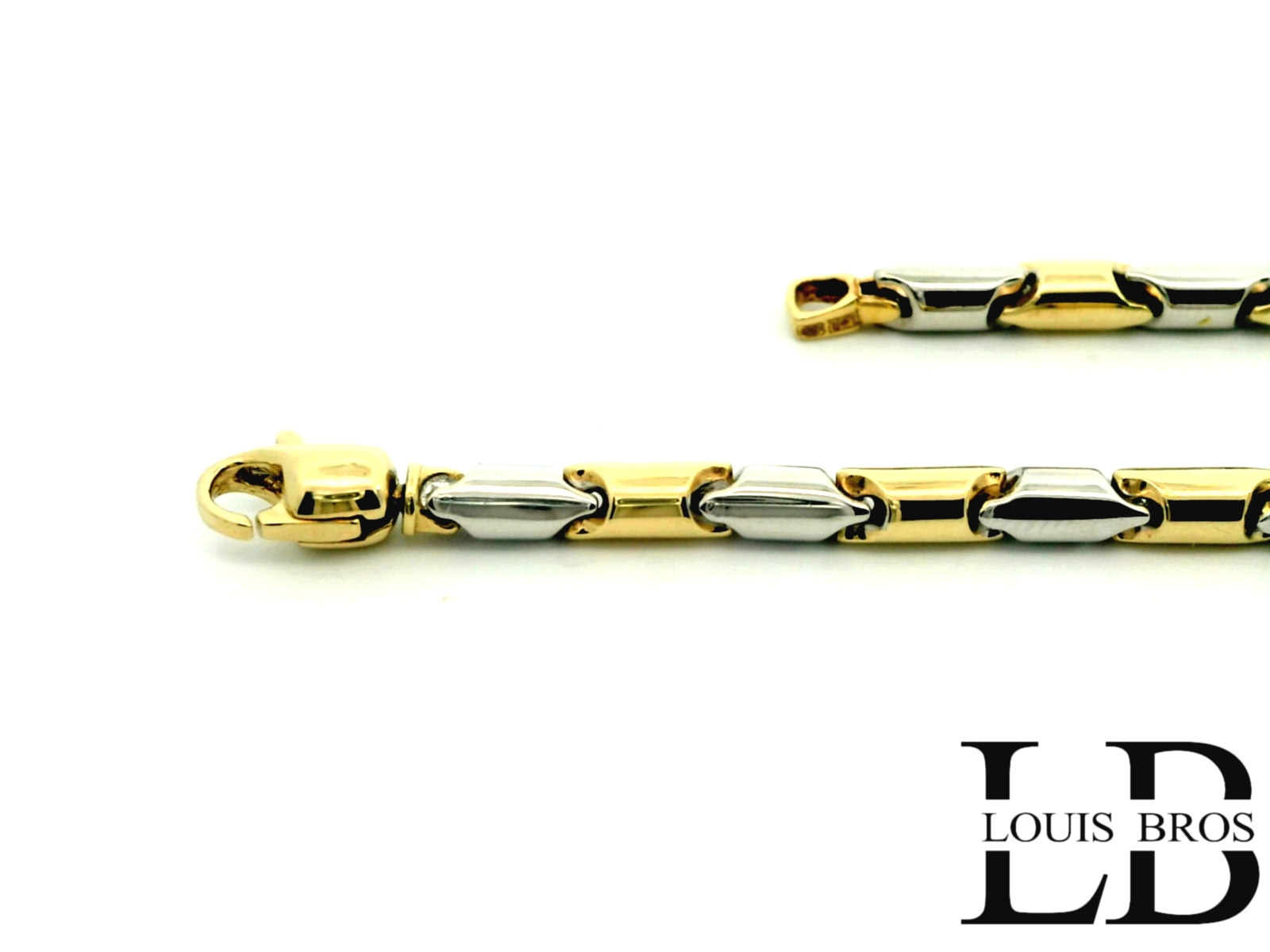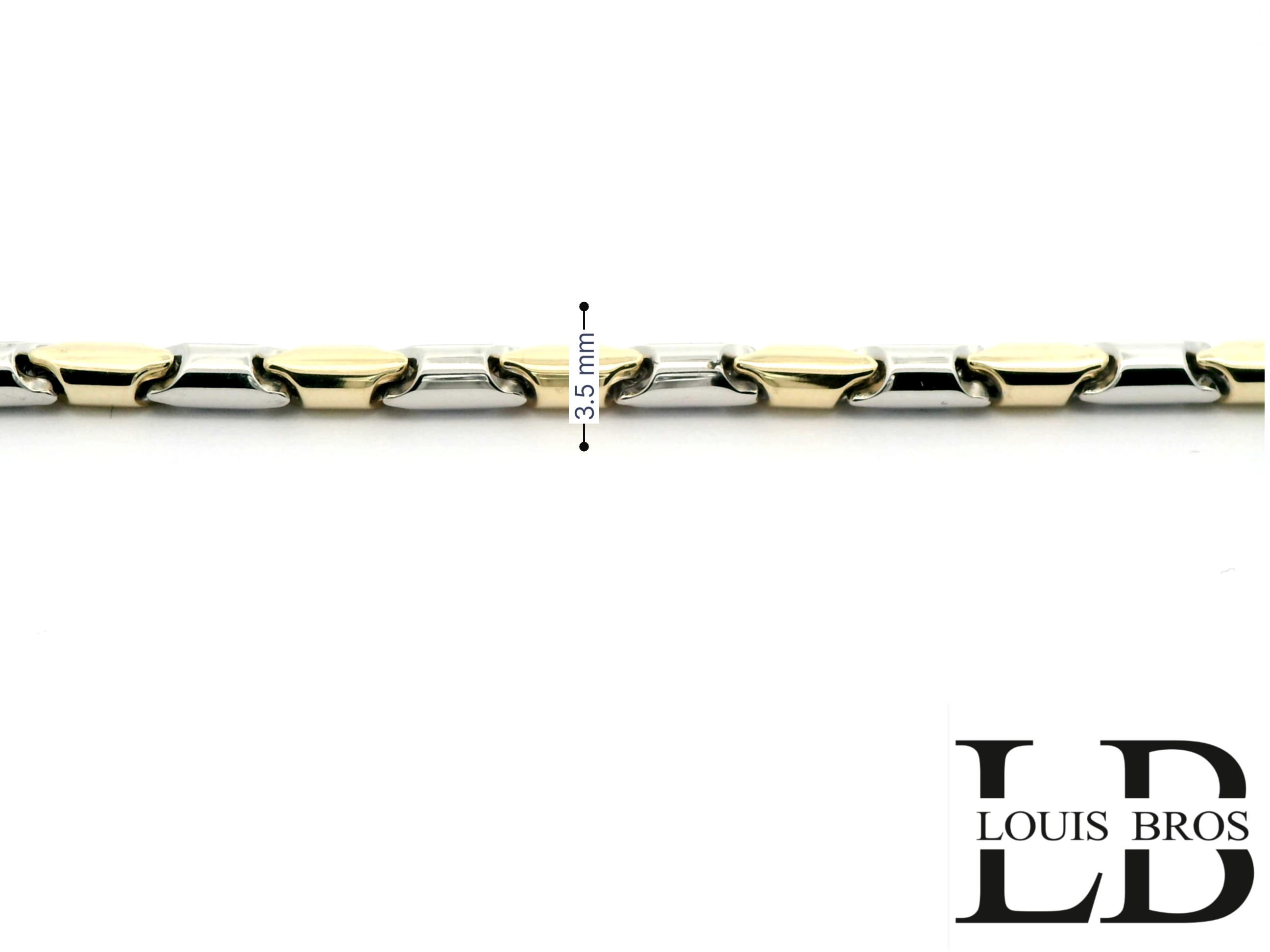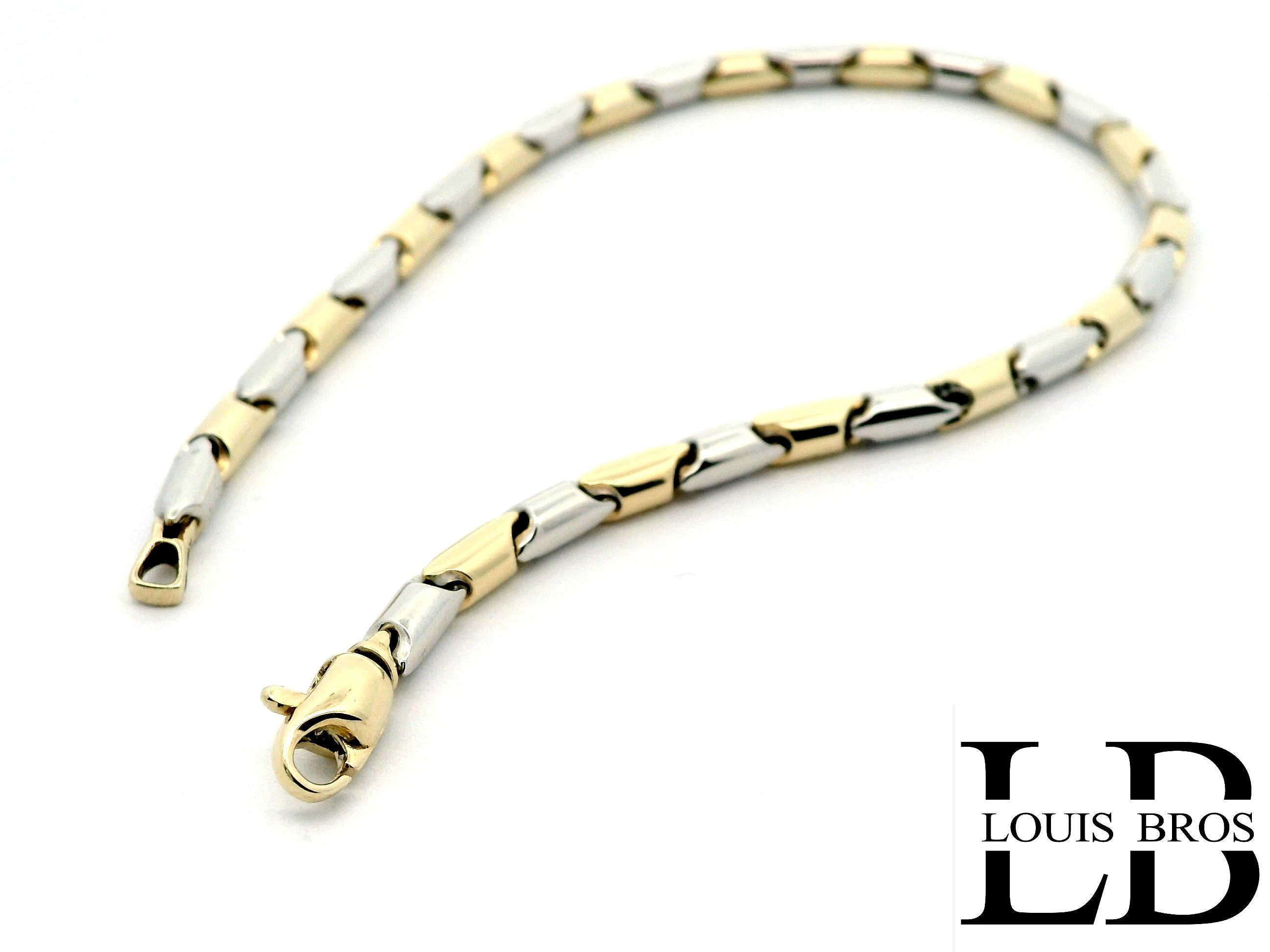 Deze prachtige armband is vervaardigd uit 14 karaat geel- en witgoud (6.67 gr) en straalt pure elegantie uit. Het verfijnde bicolor design geeft een moderne twist aan een klassiek sieraad, waardoor het zowel stijlvol als veelzijdig is.