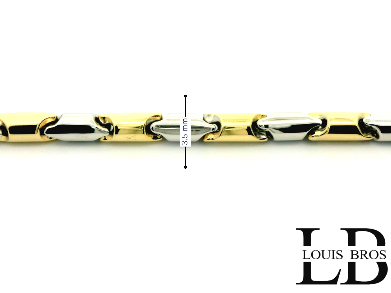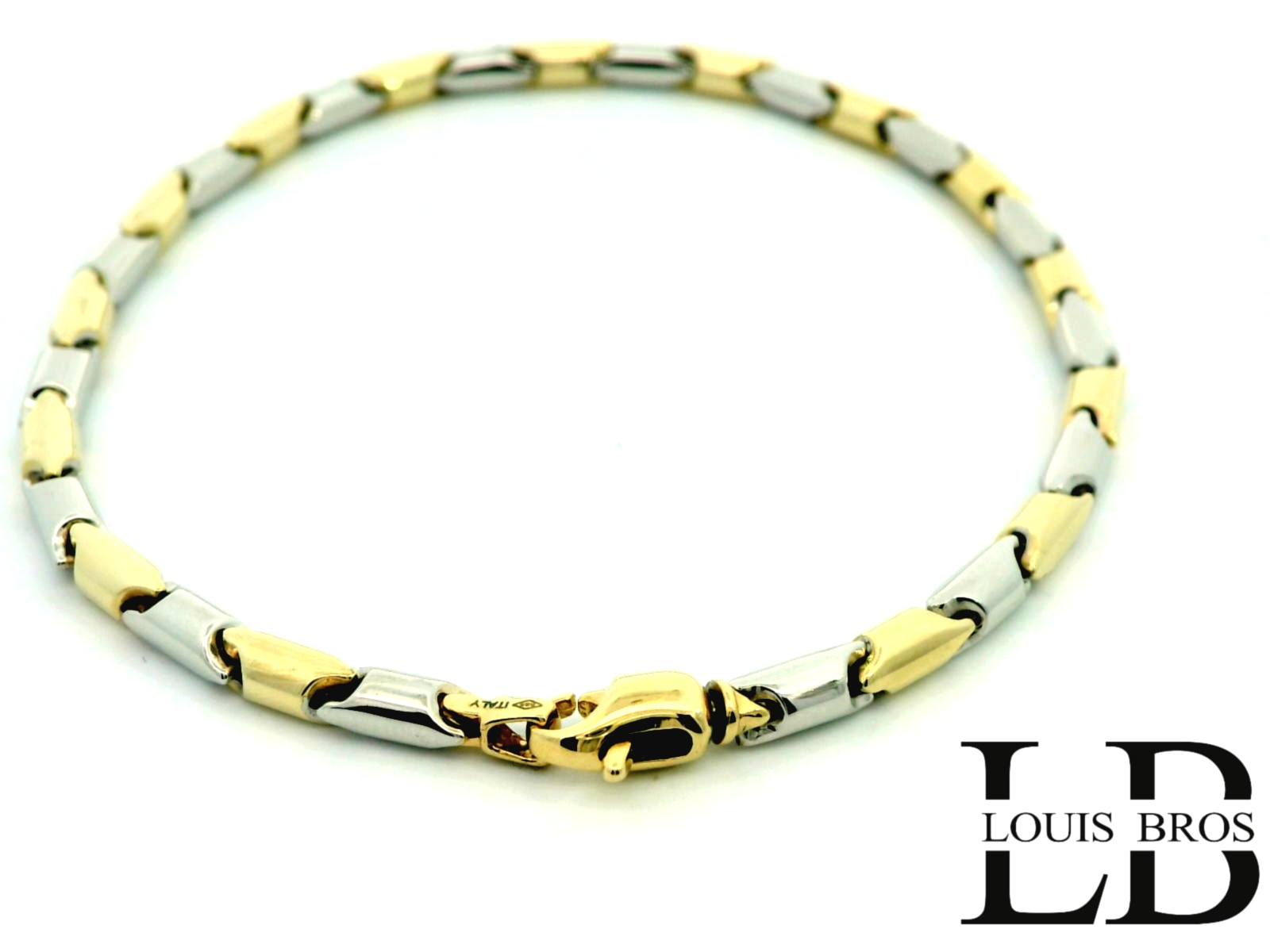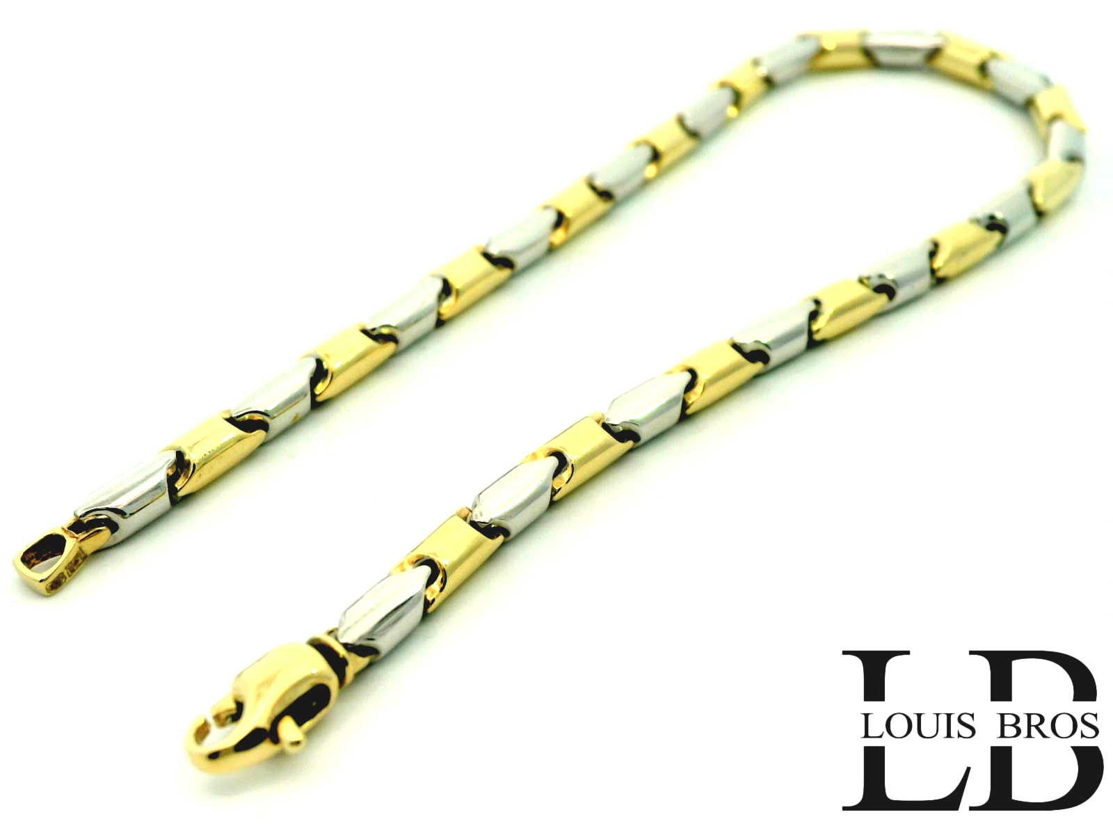 Deze prachtige armband is vervaardigd uit 14 karaat geel- en witgoud (6.67 gr) en straalt pure elegantie uit. Het verfijnde bicolor design geeft een moderne twist aan een klassiek sieraad, waardoor het zowel stijlvol als veelzijdig is.