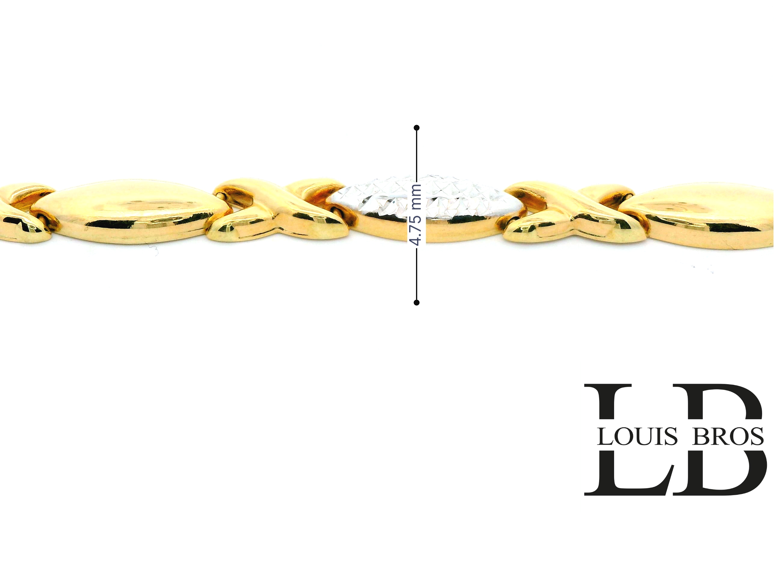 Design: Afwisselend matte en gepolijste schakels met gedetailleerde witgouden accenten