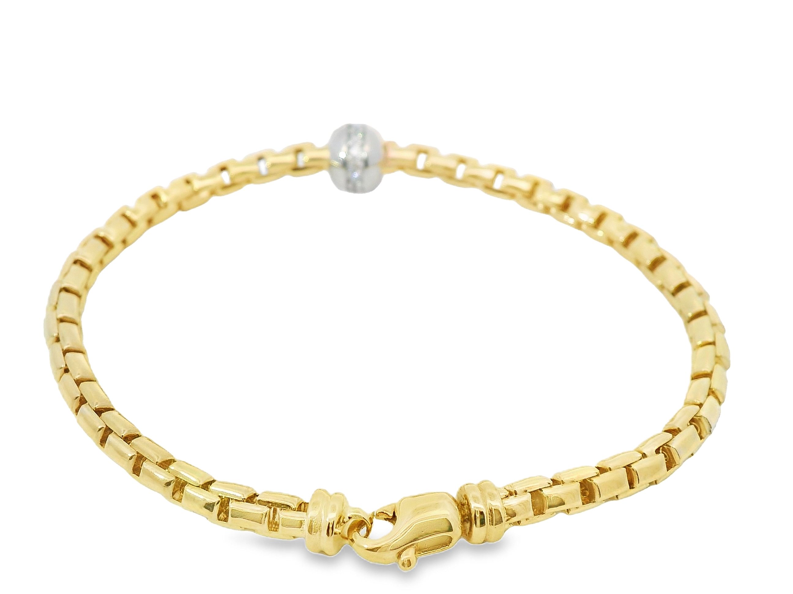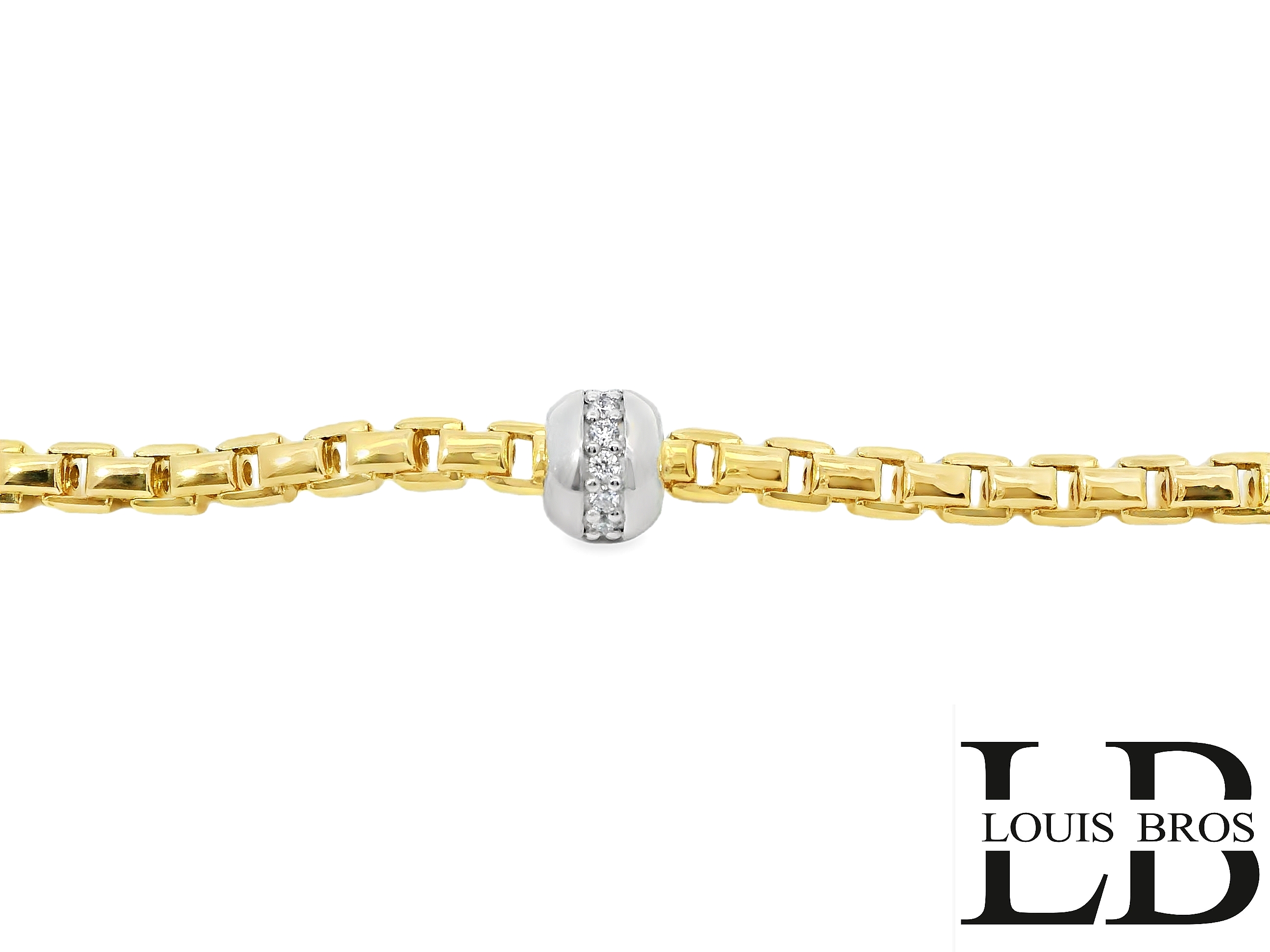 Deze 14 karaat bicolor armband (9.56 gr) straalt pure elegantie en stijl uit. Het strakke en tijdloze ontwerp maakt dit sieraad tot een veelzijdige must-have voor elke sieradenliefhebber.