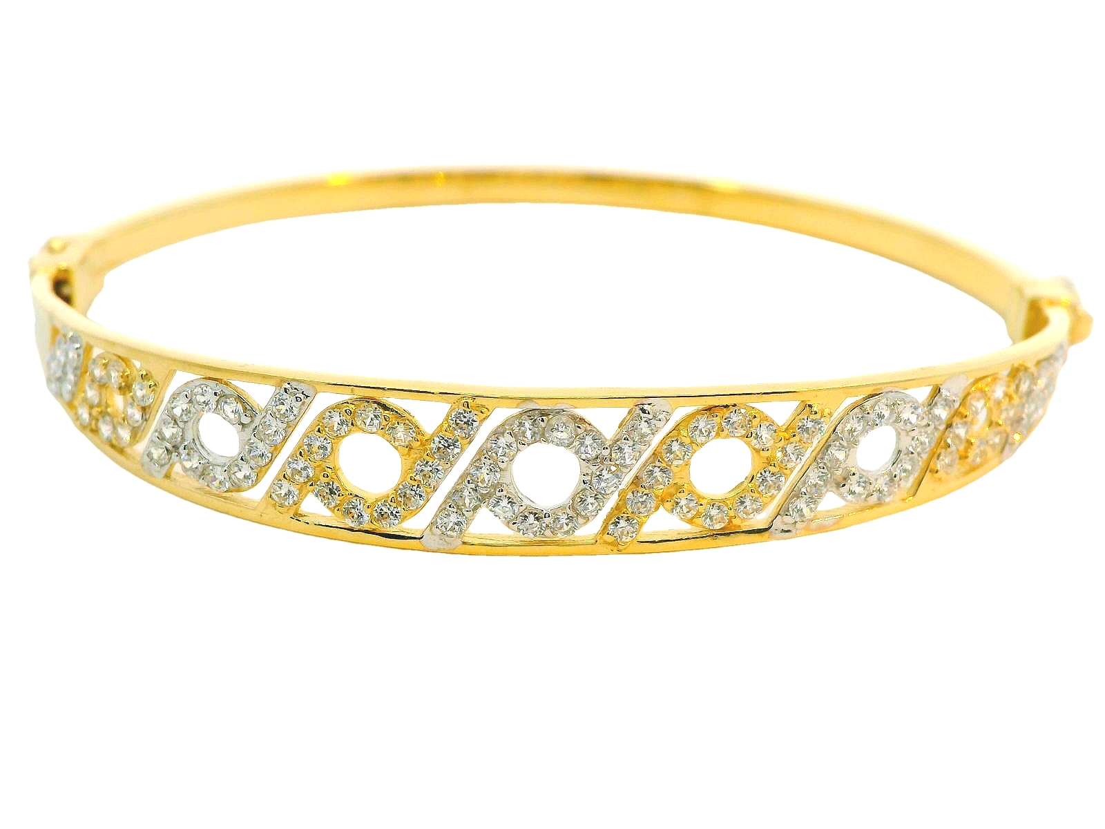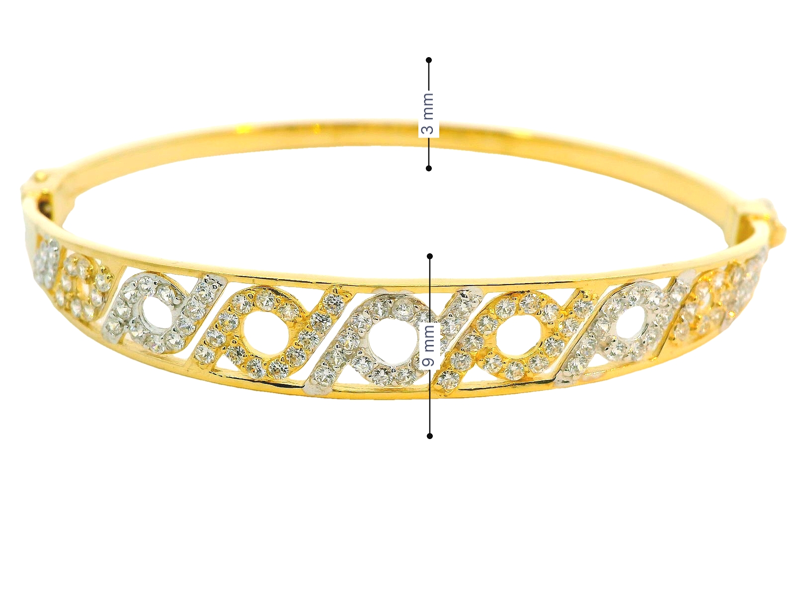 Deze bangle met zirkonia's en een fantasie design combineert elegantie met een moderne twist. Deze armband bestaat uit twee verschillende goudkleuren, meestal wit- en geelgoud, wat een prachtig contrast geeft. Het fantasieontwerp voegt een speels en uniek karakter toe, terwijl de zirkonia's voor een subtiele schittering zorgen die de bangle extra laat opvallen. Deze combinatie van klassieke materialen met een eigentijds ontwerp maakt de bicolor gouden bangle een veelzijdig en stijlvol sieraad, geschikt voor elke gelegenheid.