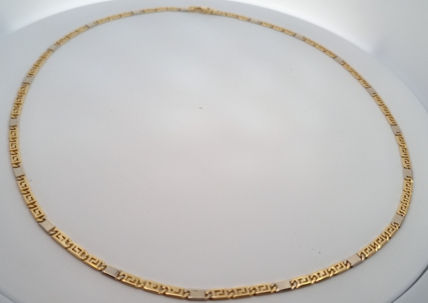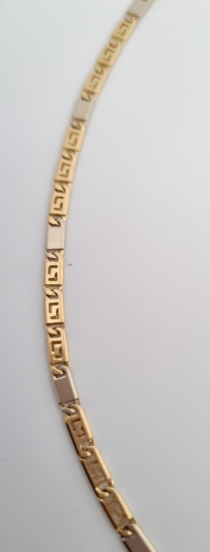 Dit unisex  collier van Louis Bros is vervaardigd uit 14 karaat bicolor (13,10gr.). Het collier heeft een lengte van 50 cm en een breedte van 3.29 mm. En een dikte van 1 mm. Deze collier is stijlvol en gemakkelijk te combineren.
