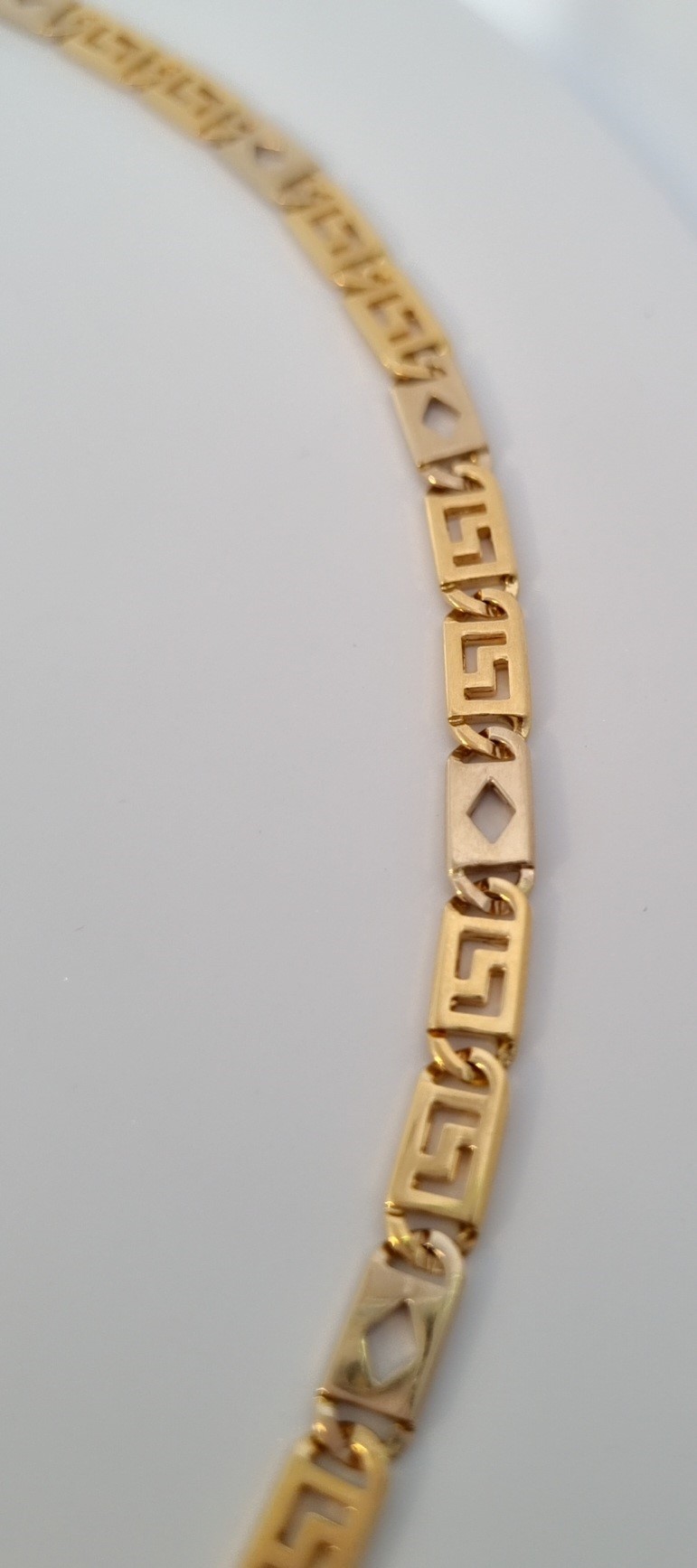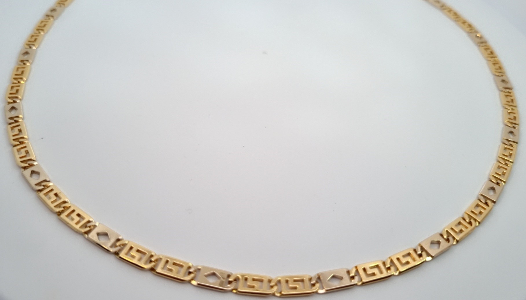 Dit unisex  collier van Louis Bros is vervaardigd uit 14 karaat bicolor (20.20gr.). Het collier heeft een lengte van 50 cm en een breedte van 4.44 mm. En een dikte van 1,06 mm. Deze collier is stijlvol en gemakkelijk te combineren.