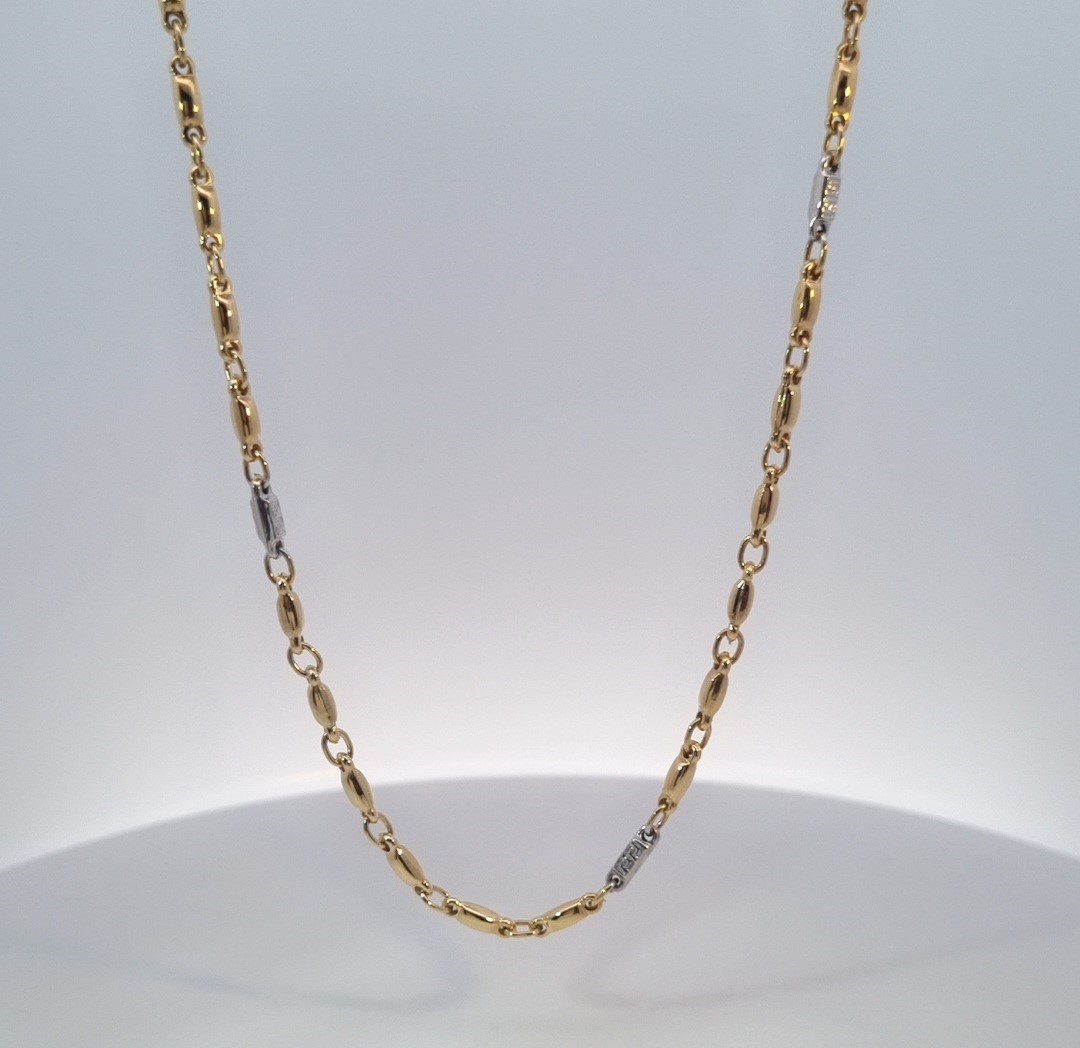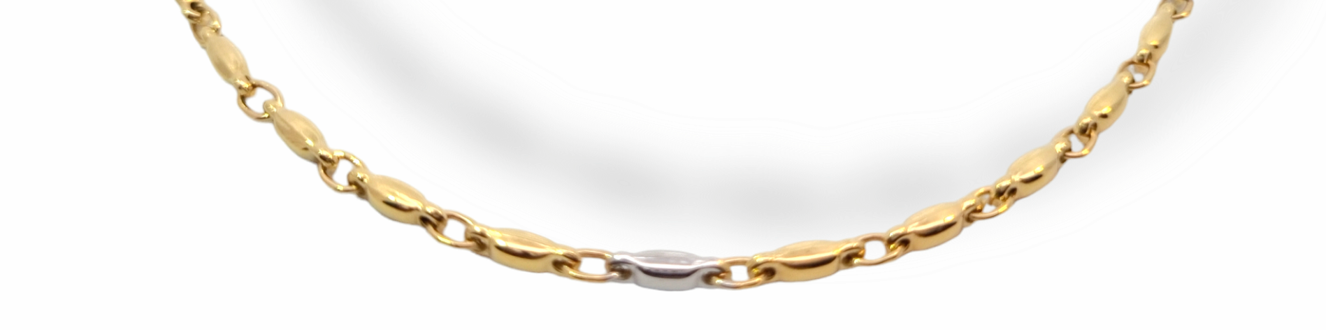 Dit collier van Louis Bros is vervaardigd uit 14 karaat bicolor (11.gr). Het collier heeft een lengte van 65 cm en een dikte van 2.50 mm. Dit collier is stijlvol, eenvoudig en gemakkelijk te combineren.