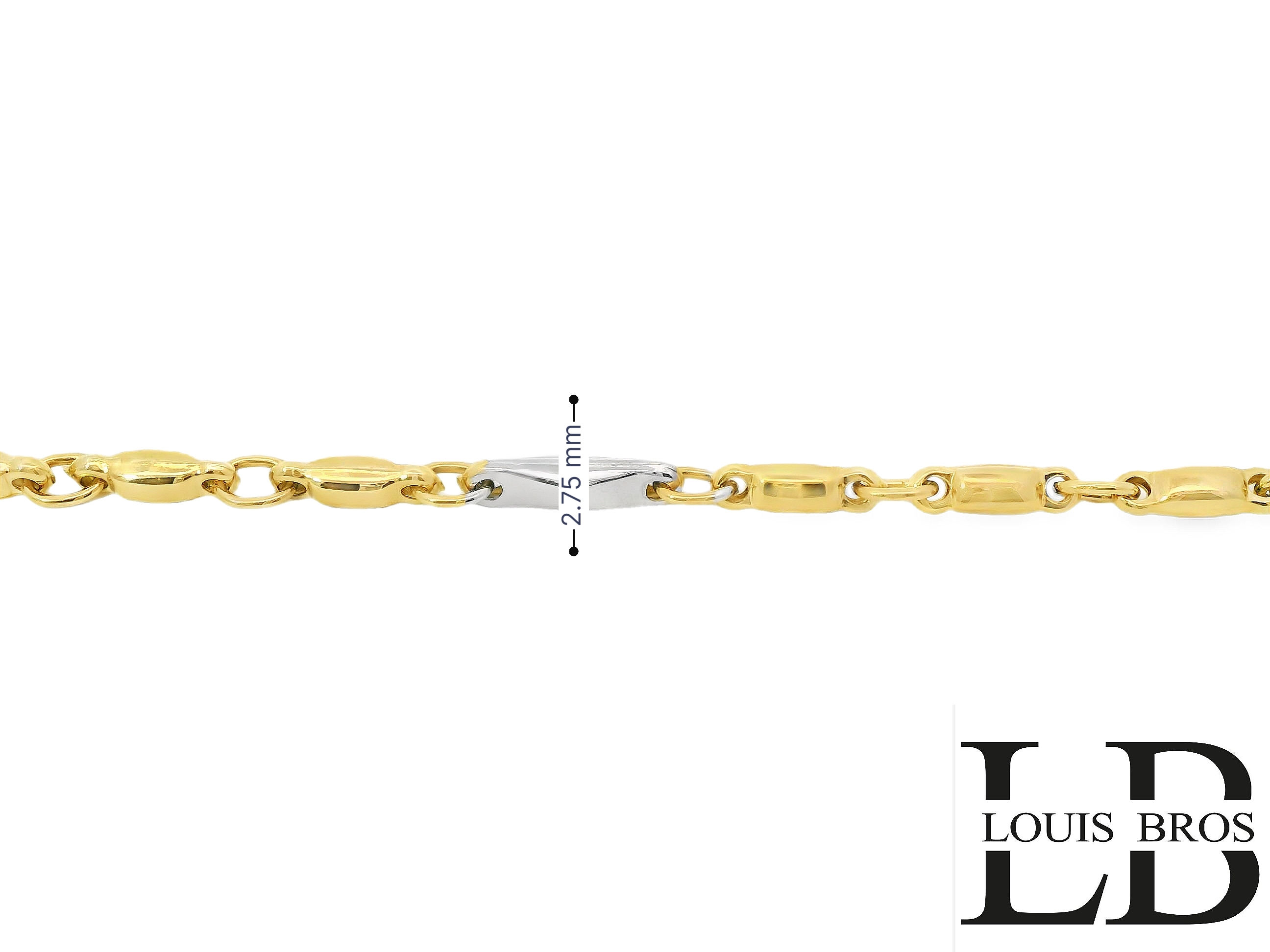 Voeg een vleugje elegantie en moderne klasse toe aan je sieradencollectie met dit prachtige bicolor 14 karaat gouden collier (11.75 gr). Dit collier combineert op verfijnde wijze geelgoud en witgoud, wat zorgt voor een stijlvolle en tijdloze uitstraling die perfect is voor zowel dames als heren.