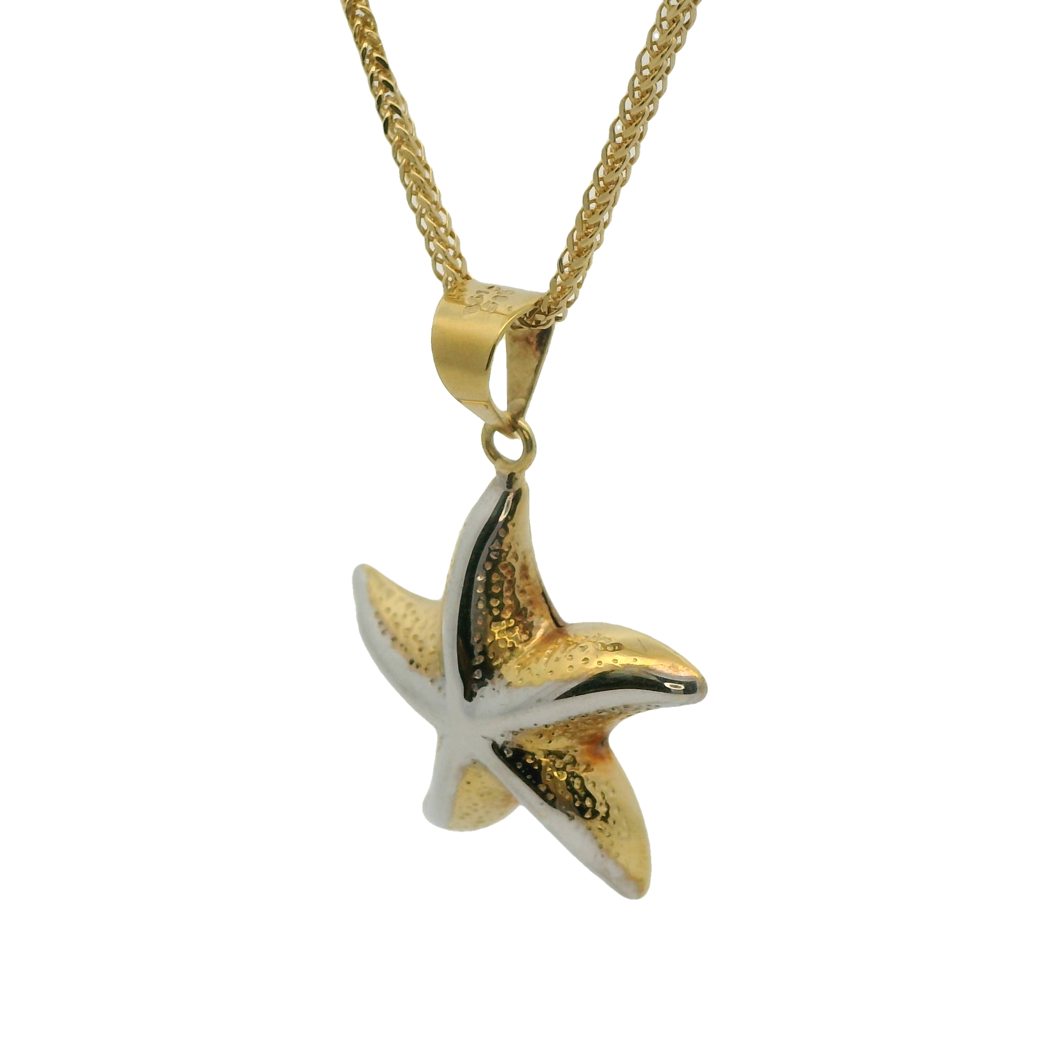 Deze hanger in de vorm van een zeester combineert maritieme charme met elegantie. De mix van geelgoud en witgoud benadrukt de sierlijke details van de zeester, een symbool van vernieuwing en evenwicht. Dit verfijnde sieraad brengt een vleugje strandliefde en luxe samen, perfect voor wie de zee altijd bij zich wil dragen.