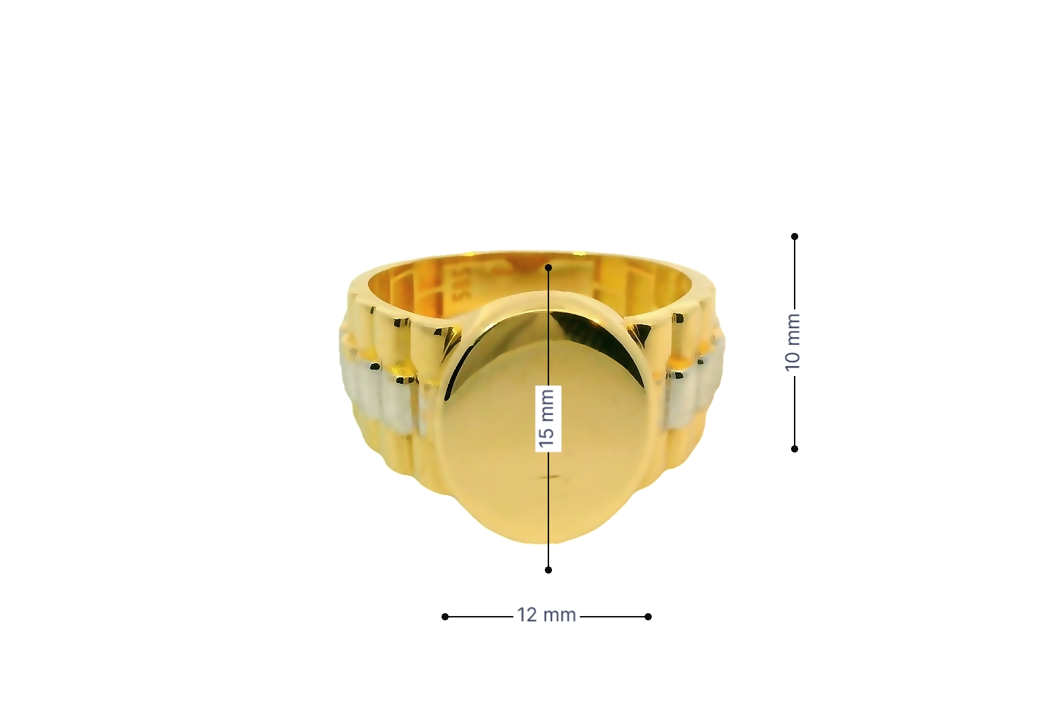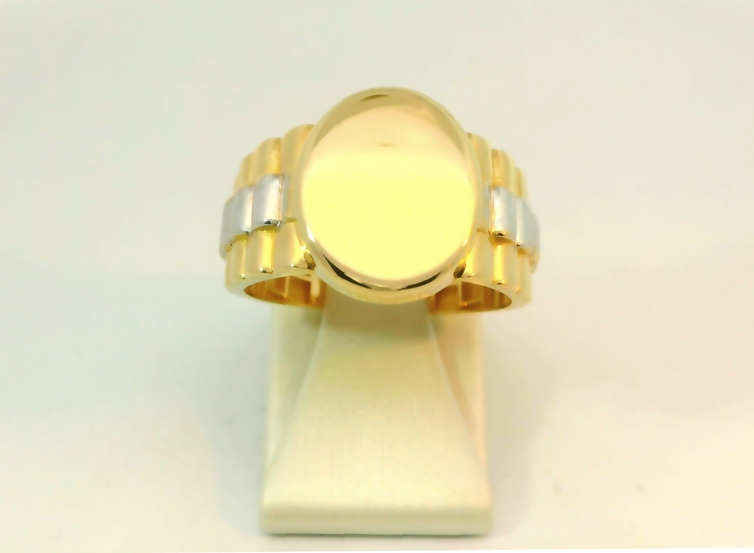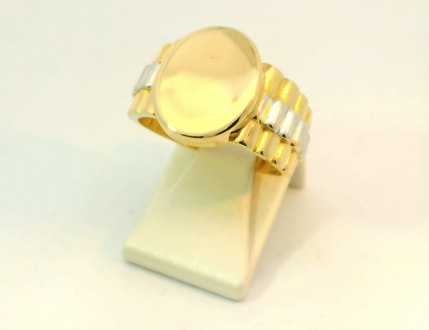Deze herenring is gemaakt van 14 karaat bicolor goud en heeft een stijlvol design. Het is perfect te combineren met zowel casual als formele outfits. Draag deze ring als een statement piece om je look compleet te maken. De combinatie van geelgoud en witgoud geeft de ring een klassieke uitstraling. Maak jouw outfit af met deze prachtige herenring!