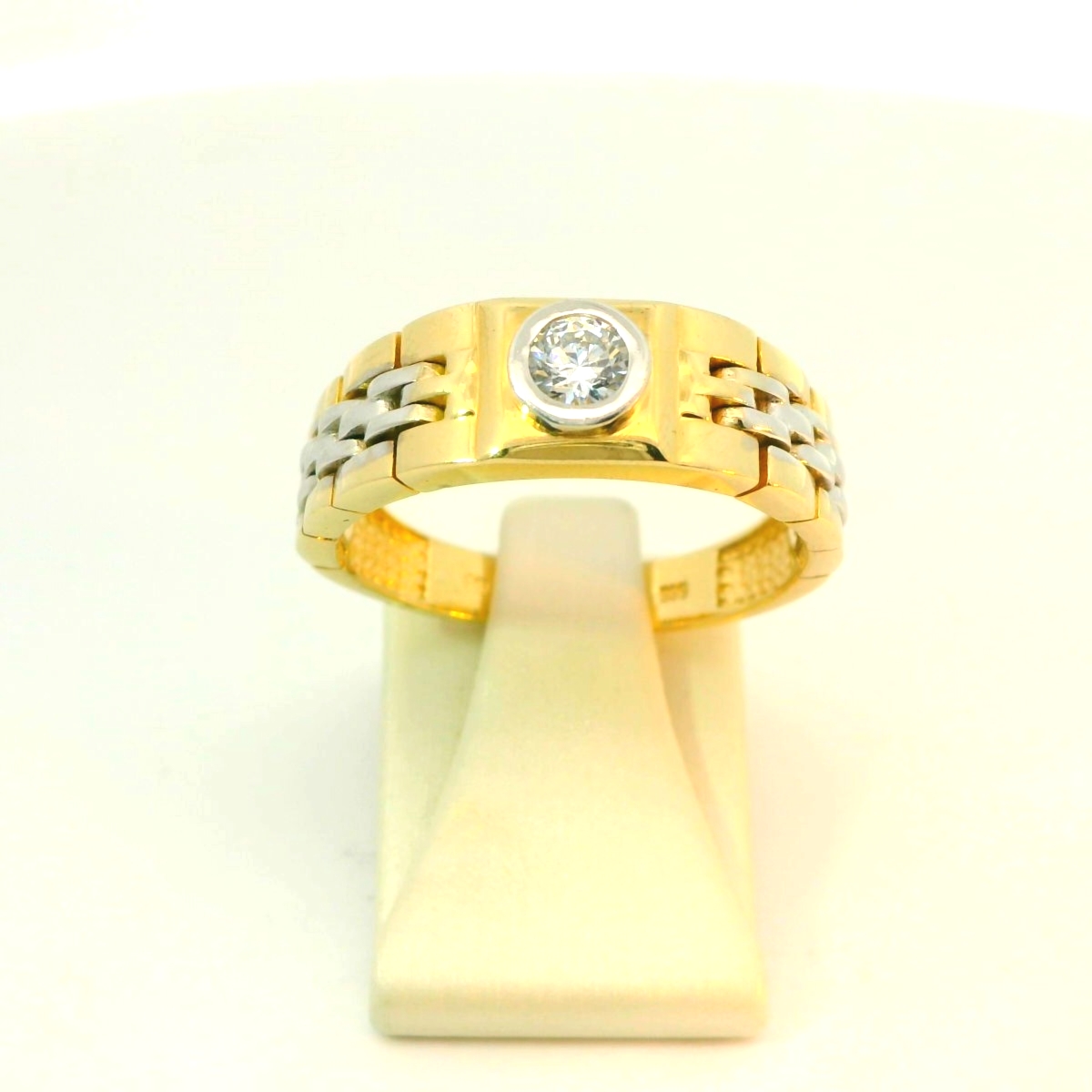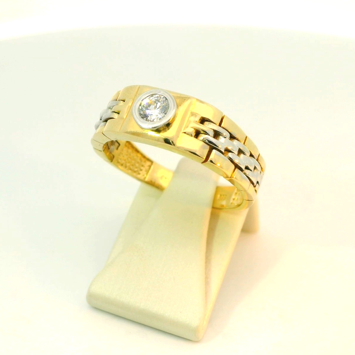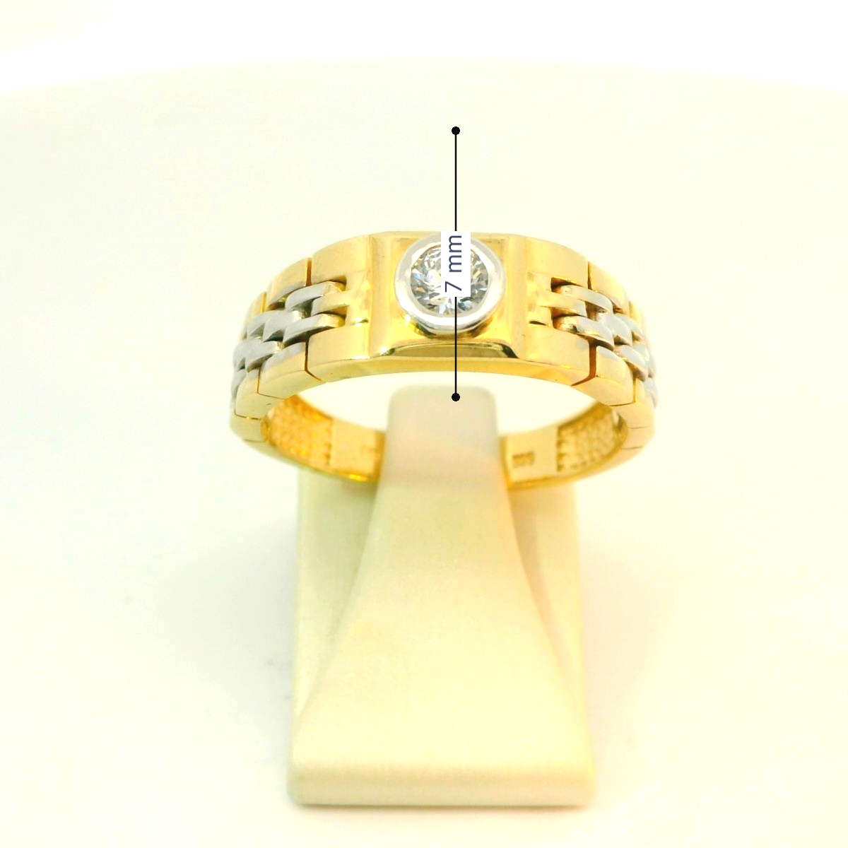 Deze prachtige ring is perfect voor heren en is gemaakt van 14 karaat bicolor goud met zirkonia stenen. Het is een stijlvol en tijdloos accessoire dat elke outfit een luxe uitstraling geeft. Draag deze ring solo voor een subtiele touch of combineer hem met andere gouden sieraden voor een extra glamoureuze look. Maak je outfit compleet met deze prachtige herenring!