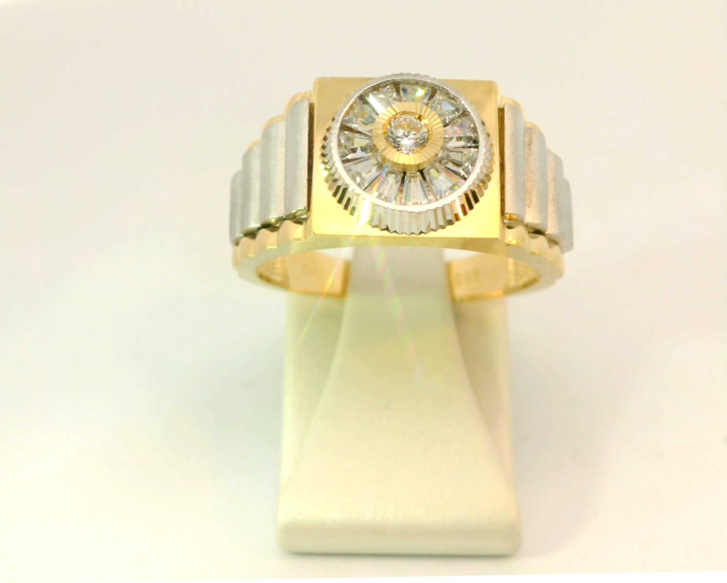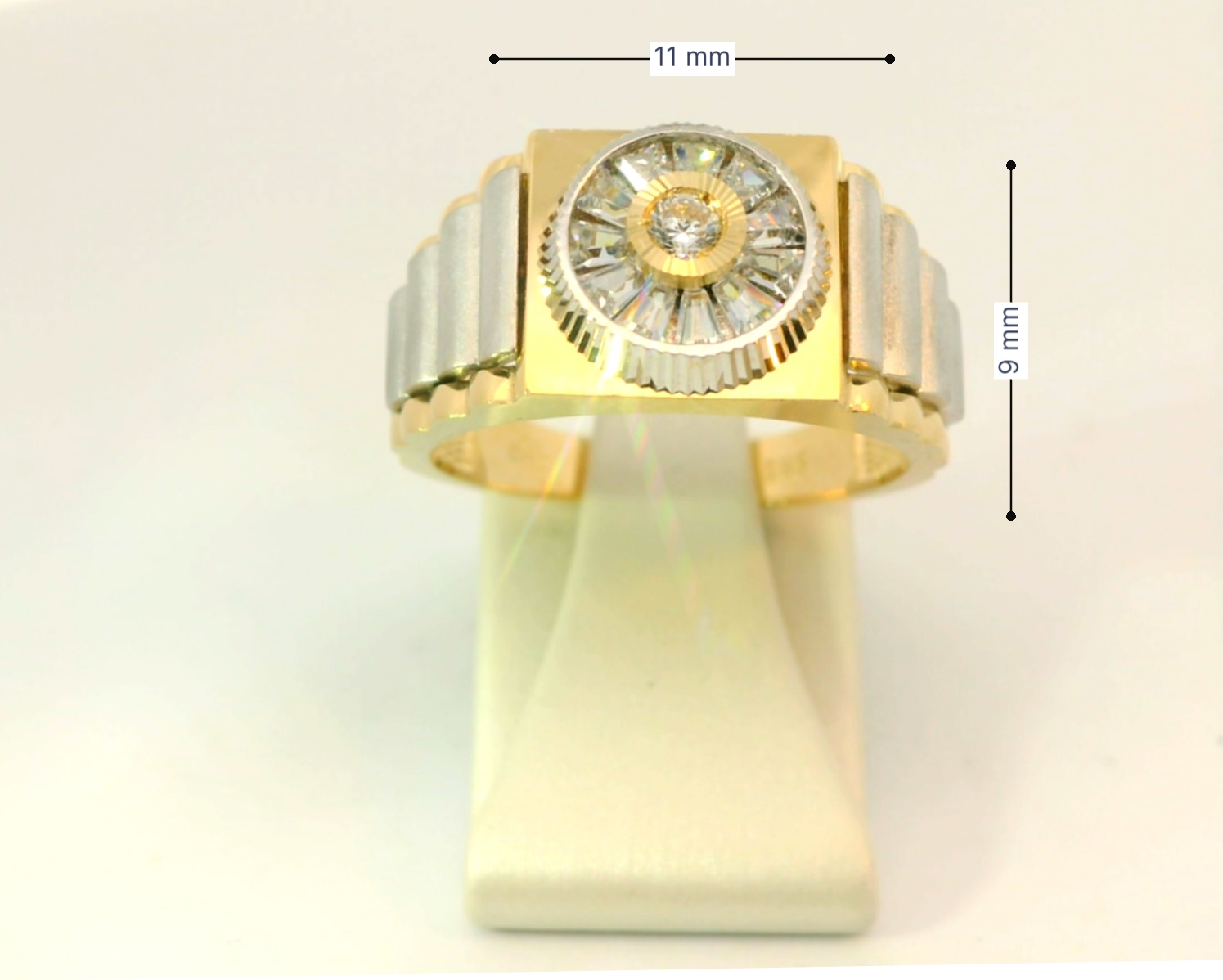 Deze prachtige herenring is gemaakt van 14 karaat bicolor goud en is versierd met zirkonia stenen, wat zorgt voor een luxe uitstraling. De ring is perfect om dagelijks te dragen of bij speciale gelegenheden. Combineer hem met andere gouden sieraden voor een complete look. Deze ring is een tijdloze toevoeging aan elke sieradencollectie. Bestel nu en draag hem met trots!