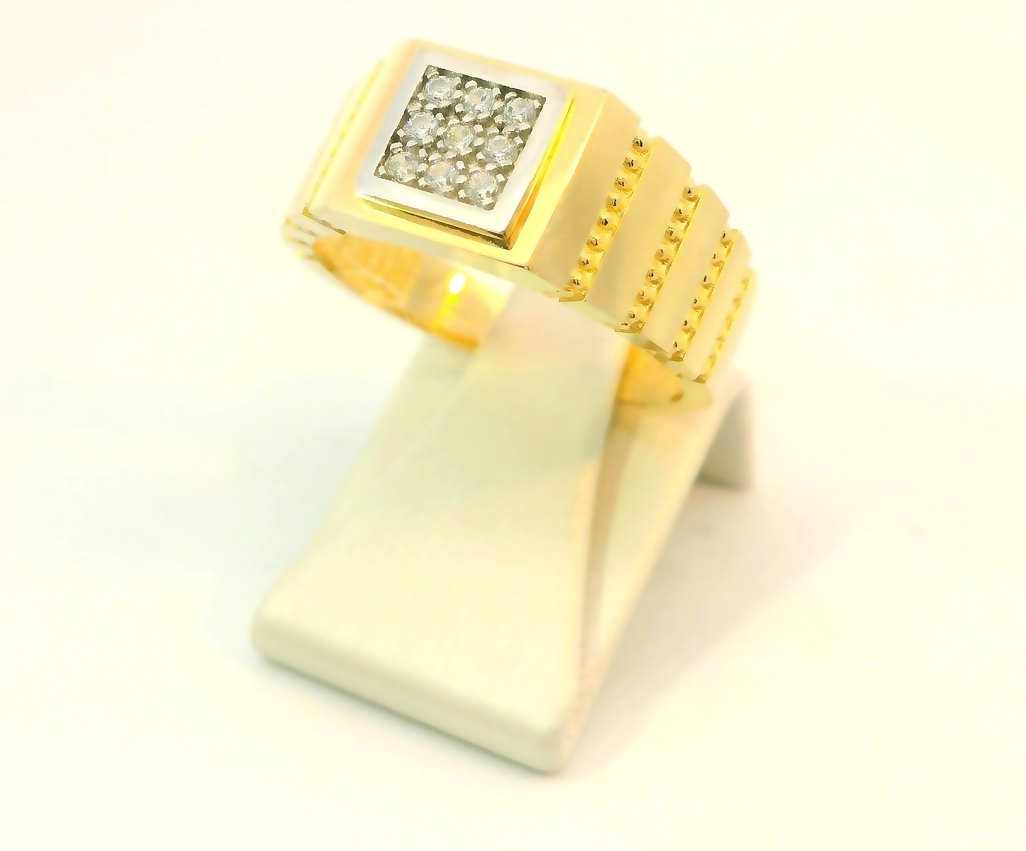 Deze prachtige bicolor gouden herenring van 14 karaat is versierd met schitterende zirkonia stenen. De ring heeft een stijlvol en elegant design en is perfect voor dagelijks gebruik of speciale gelegenheden. Combineer deze ring met je favoriete outfit voor een luxe uitstraling. Een tijdloos en waardevol sieraad dat een eyecatcher zal zijn. Laat jezelf stralen met deze unieke herenring!