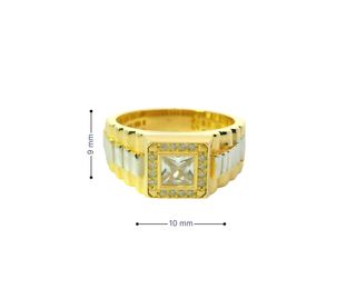 Deze prachtige bicolor gouden herenring van 14 karaat is versierd met een schitterende zirkonia steen. De ring is stijlvol en tijdloos, waardoor hij perfect is voor elke gelegenheid. Draag deze ring alleen om subtiel te schitteren, of combineer hem met andere gouden sieraden voor een elegante look. Het is een echte eyecatcher voor de moderne man. Maak je outfit compleet met deze schitterende herenring!