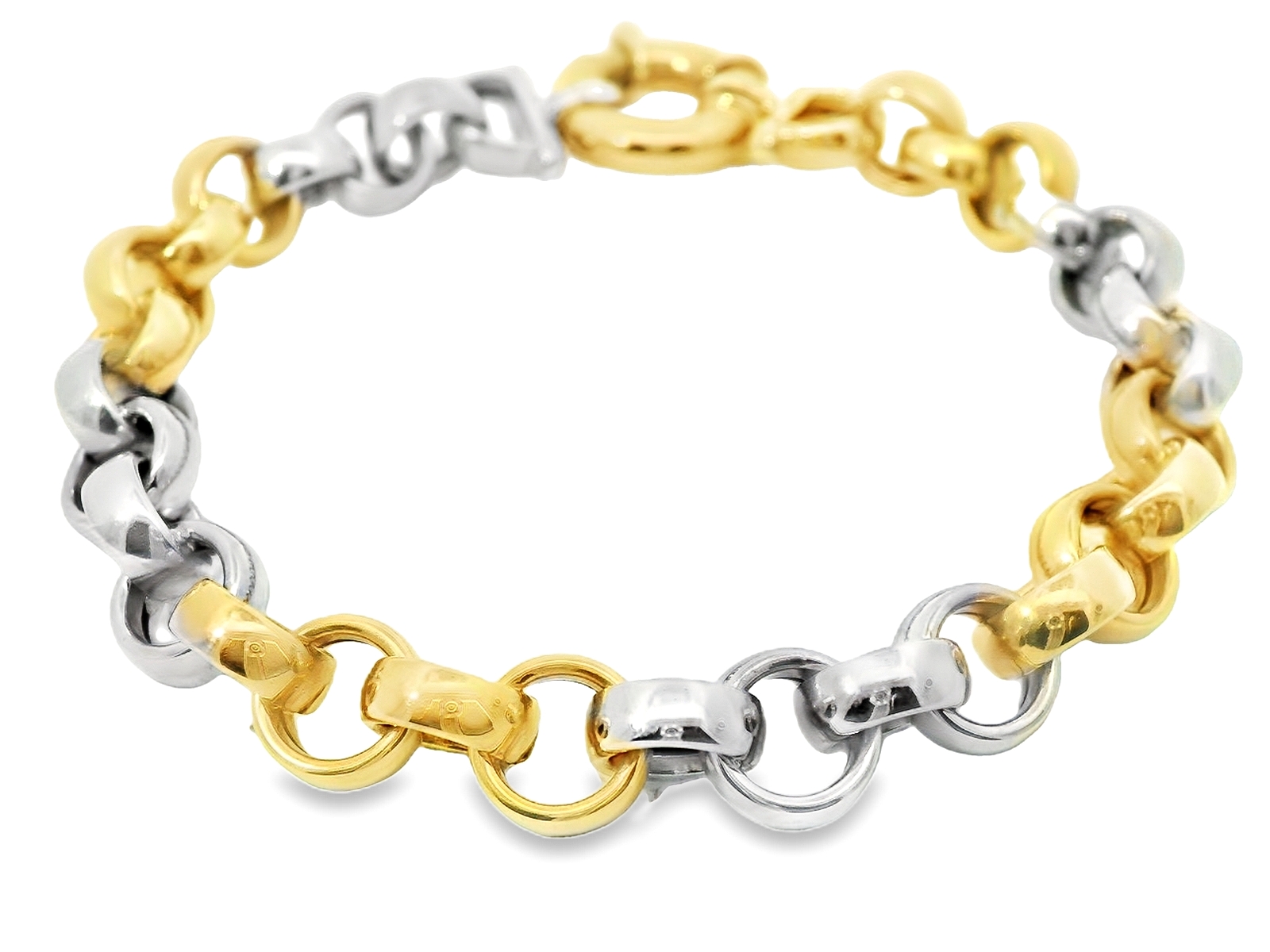 Deze prachtige bicolor gouden jasseron armband(17. gr) is een stijlvolle en veelzijdige toevoeging aan elke sieradencollectie. Gemaakt van 14 karaat goud, combineert deze armband elegant geelgoud en witgoud, wat zorgt voor een speels en luxueus contrast.