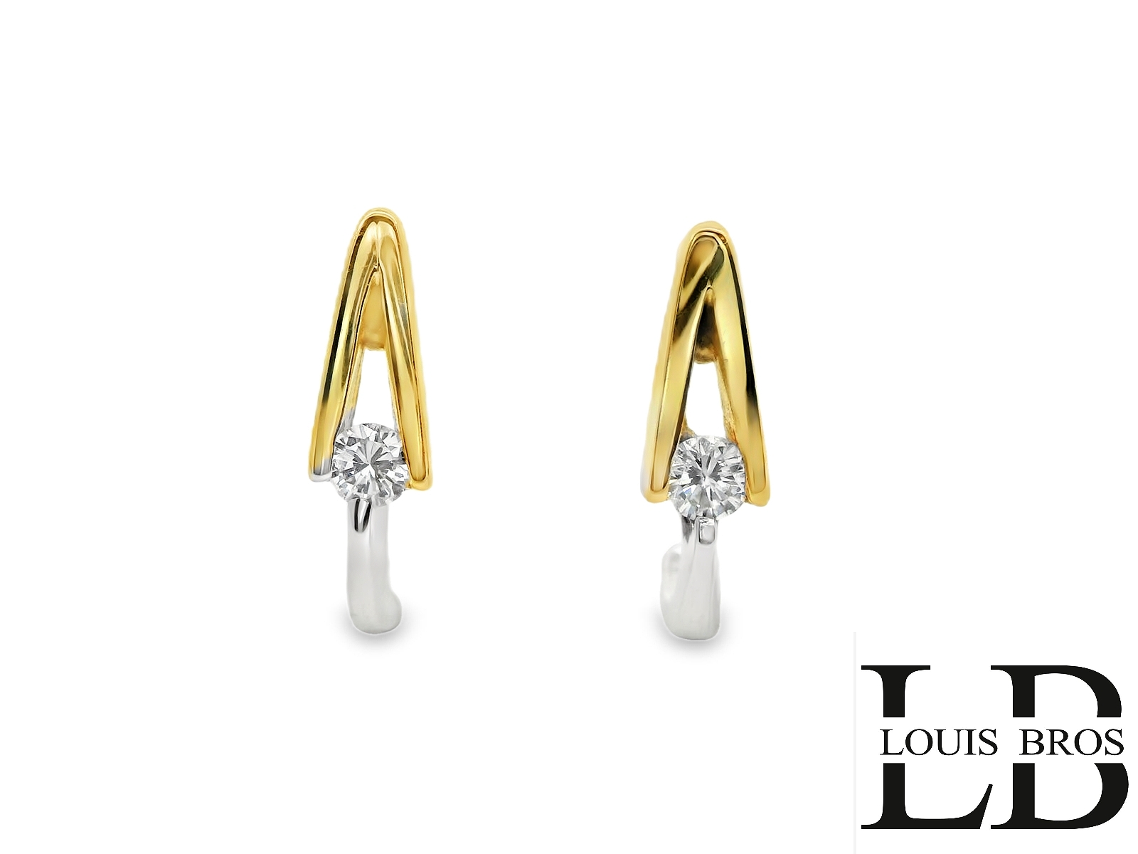Deze stekers van Louis Bros zijn vervaardigd uit 14 karaat bicolor (2.52 gr.) en zijn gezet met 2 briljant geslepen diamanten met een totaalgewicht van 0.10CT.