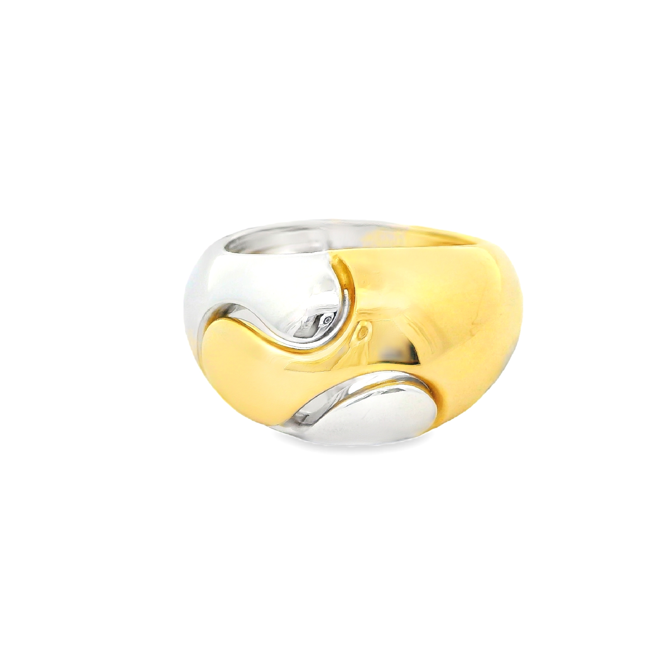 Ontdek de elegantie van een bicolor gouden ring, waar traditioneel geelgoud moeiteloos samenkomt met eigentijds witgoud. Dit moderne design benadrukt de harmonie tussen klassieke schoonheid en hedendaagse stijl. De subtiele contrasten en vloeiende lijnen maken deze ring tot een verfijnd statementstuk, perfect voor elke gelegenheid. Een tijdloze keuze die zowel luxe als verfijning uitstraalt.