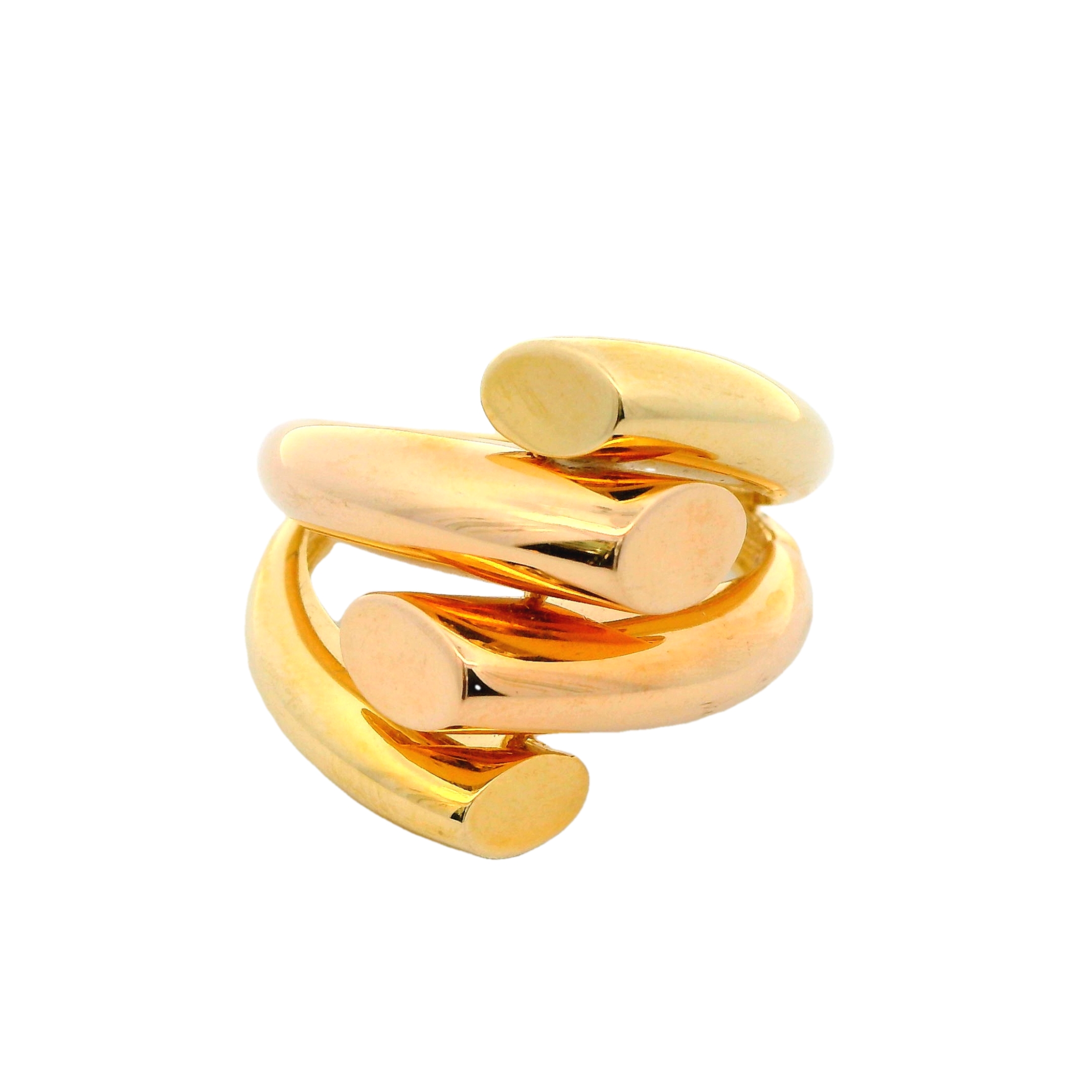 Deze ring van Louis Bros is vervaardigd uit 14 karaat bicolor (5.75 gr.).