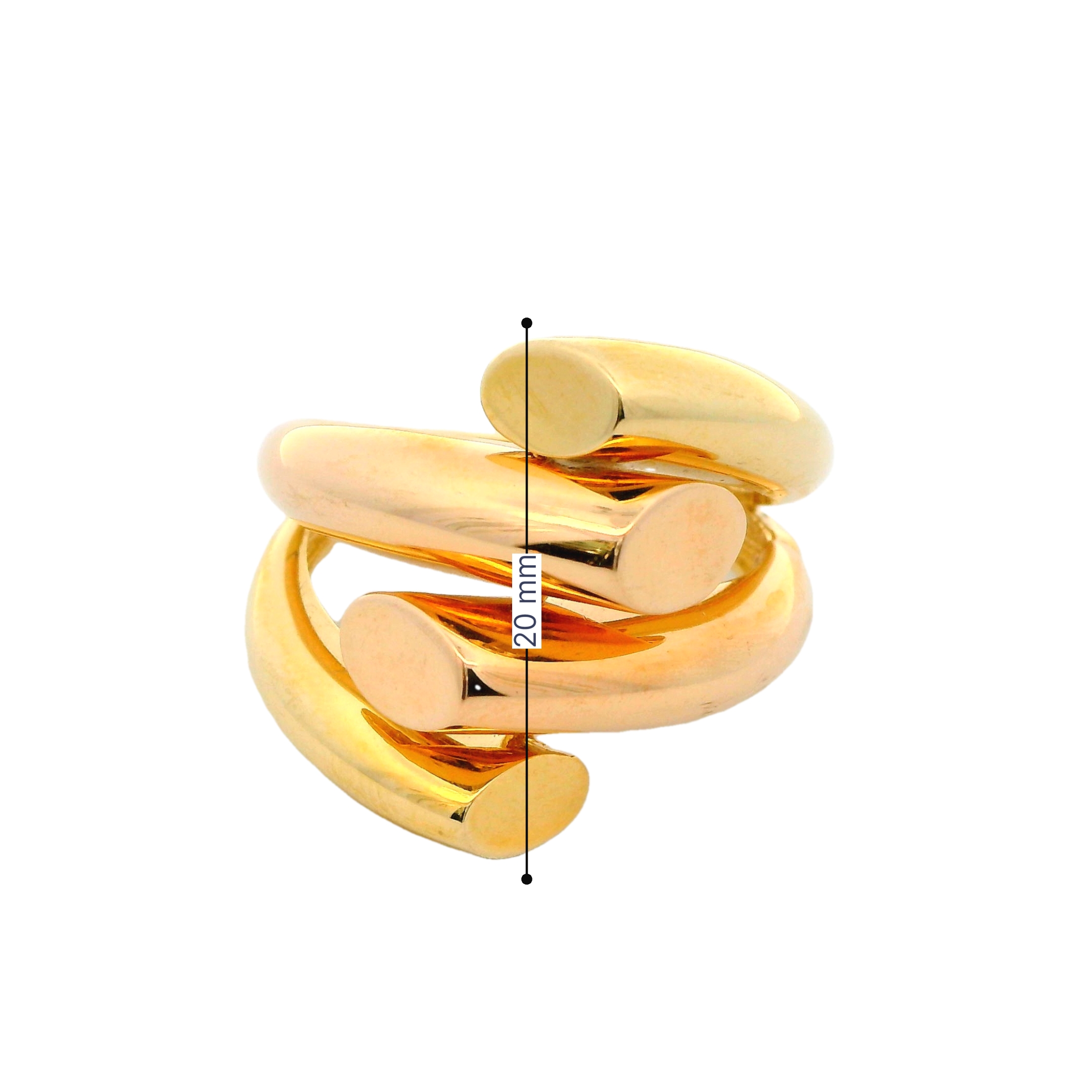 Deze verfijnde fantasiering combineert de warme tinten van roségoud en geelgoud tot een schitterend bicolor ontwerp. De harmonie tussen de roze en gouden tinten wordt versterkt door delicate lijntjes die sierlijk over de ring lopen, wat zorgt voor een speels en elegant patroon. Deze subtiele lijnen voegen een moderne twist toe aan het klassieke ontwerp, waardoor de ring een uniek en stijlvol sieraad wordt. Of het nu voor een speciale gelegenheid of als een dagelijkse eyecatcher is, deze ring straalt luxe en verfijning uit en is een prachtige toevoeging aan elke sieradencollectie.