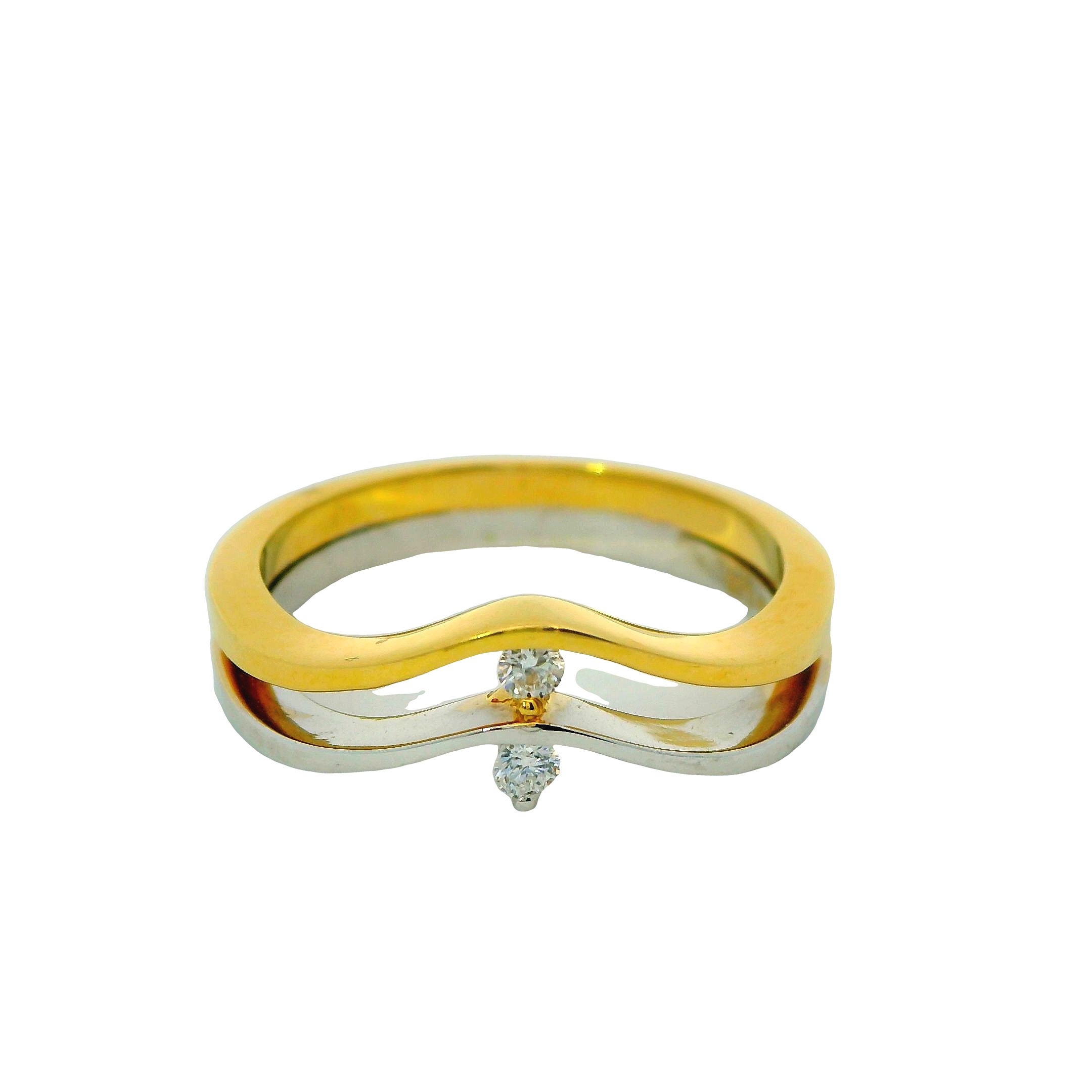 Deze ring van Louis Bros is vervaardigd uit 14 karaat geelgoud (4.27 gr.) en is gezet met 2 briljant geslepen diamanten met een totaalgewicht van 0.06ct. De ring heeft een breedte van 4 mm en een hoogte van 2.5 mm. Deze ring bestaat uit onze lijn van exclusieve modellen sieraden met prachtige designs van hoge kwaliteit.