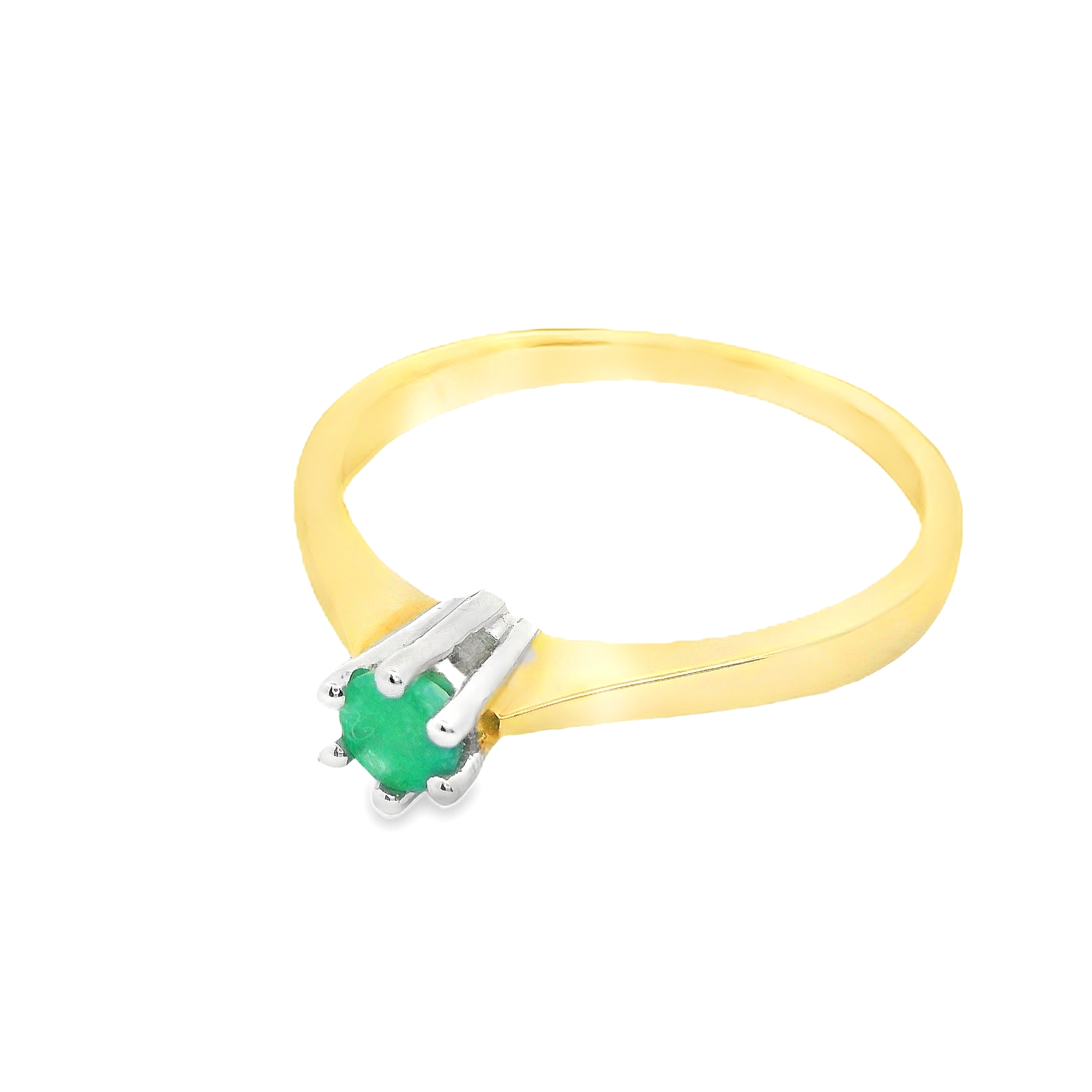 Deze ring van Louis Bros is vervaardigd uit 14 karaat bicolor (2.29 gr.) en is gezet met 1 smaragd 0.15ct. De ring heeft een diameter van 3 mm, minimale breedte van 2 mm. en een hoogte van 6 mm. Deze ring straalt eenvoud en elegantie uit. De focus ligt op de prachtige smaragd in het midden, die wordt omringd door een zetting van wit rhodium. Dit zorgt voor een mooie, heldere uitstraling en laat de steen schitteren als nooit tevoren. Deze subtiel solitair ring is perfect voor diegenen die houden van een minimalistisch en tijdloos design. Het is een sieraad dat elke dag gedragen kan worden en elke outfit een vleugje glamour geeft. Met deze ring om je vinger zul je zeker stralen!