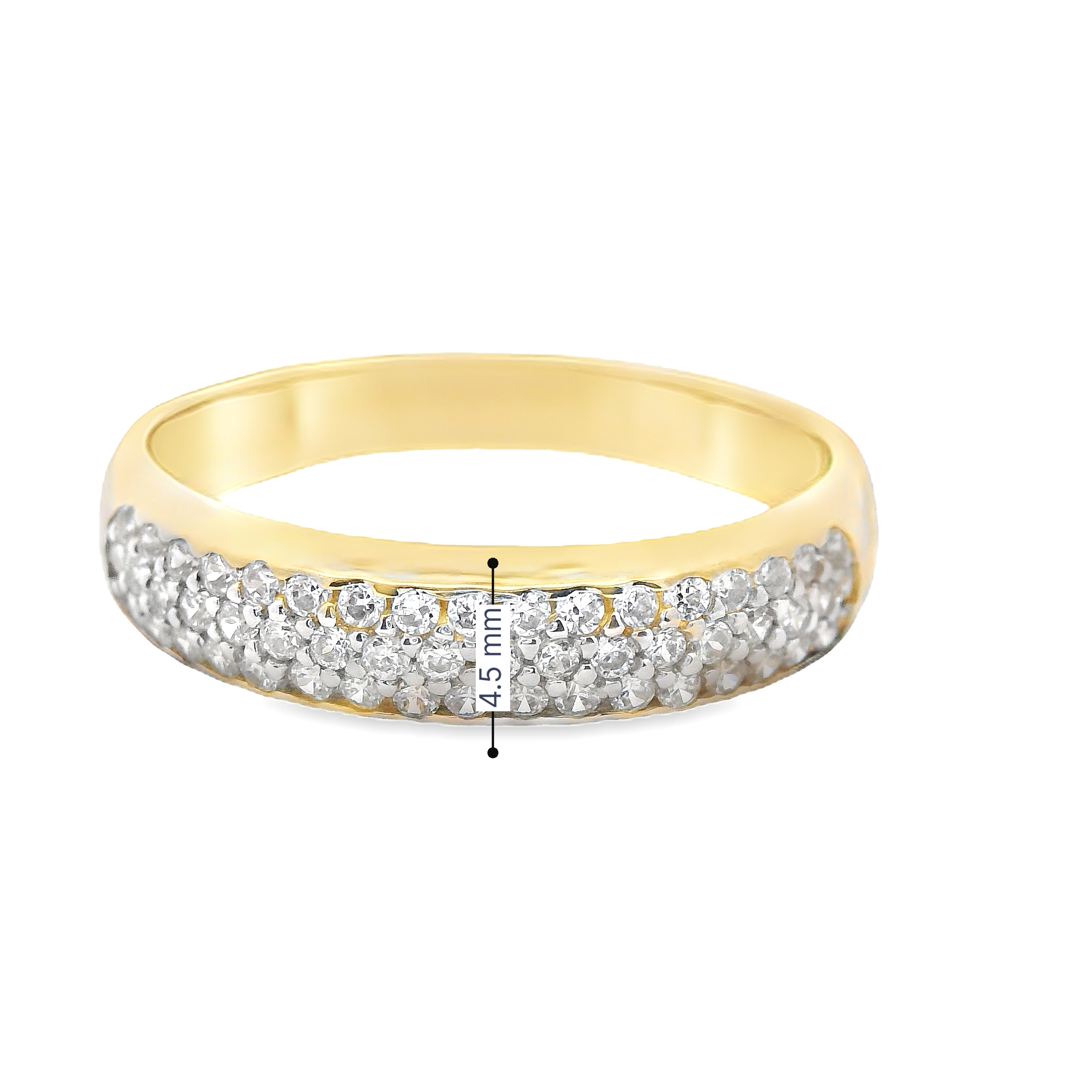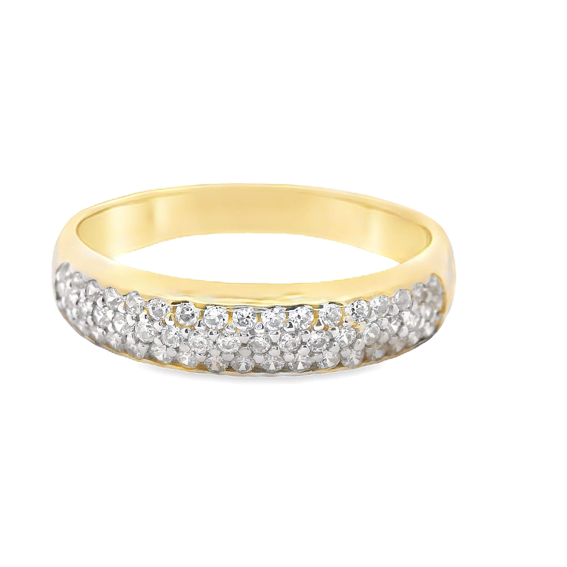 Deze ring combineert de luxe van geelgoud met de strakke uitstraling van witgoud in een modern design. Versierd met sprankelende zirkonia-steentjes, voegt deze ring een vleugje glans en elegantie toe. Het subtiele contrast van de metalen en de schittering van de zirkonia maken dit sieraad tot een verfijnd statementstuk, perfect voor elke moderne vrouw die houdt van tijdloze schoonheid met een eigentijdse twist.