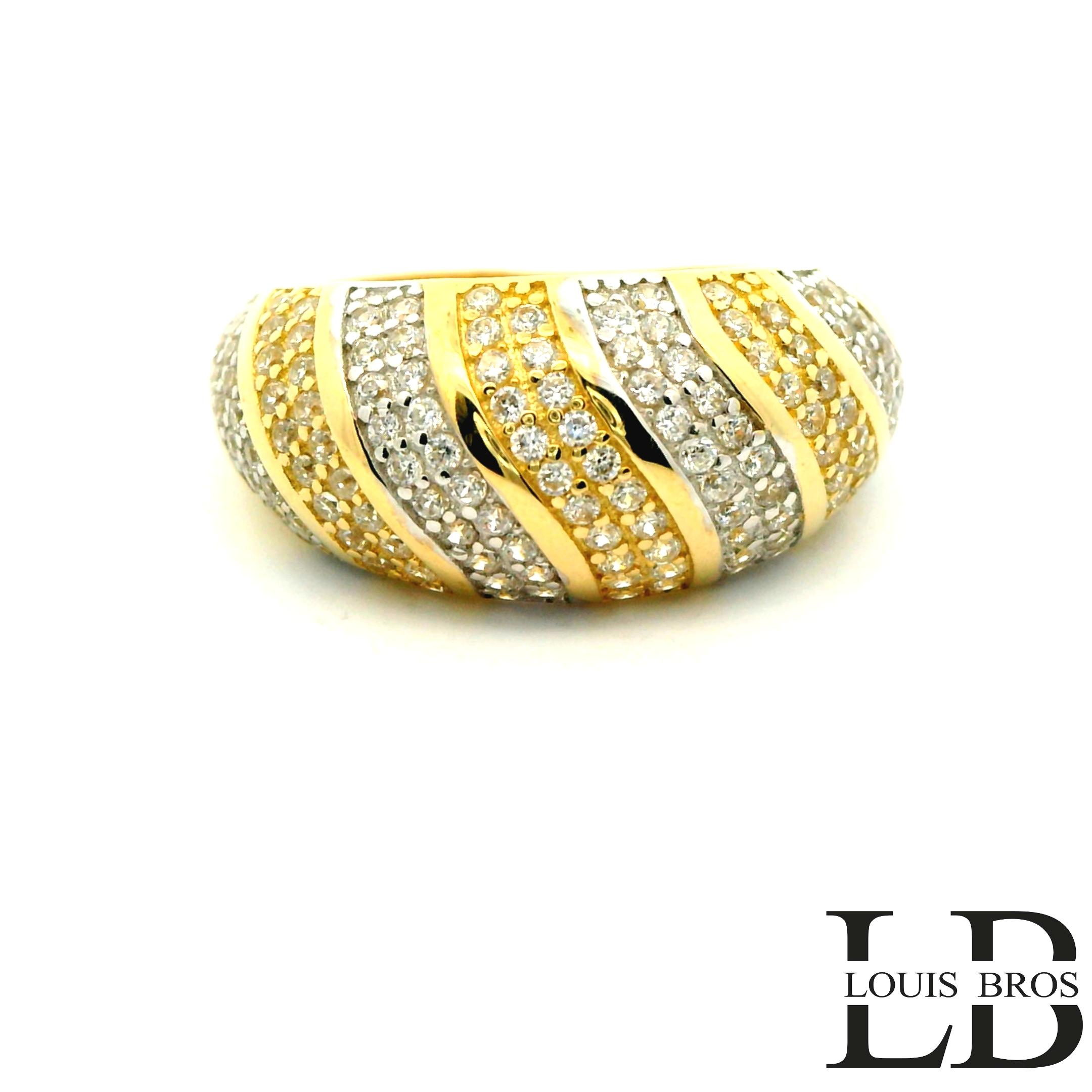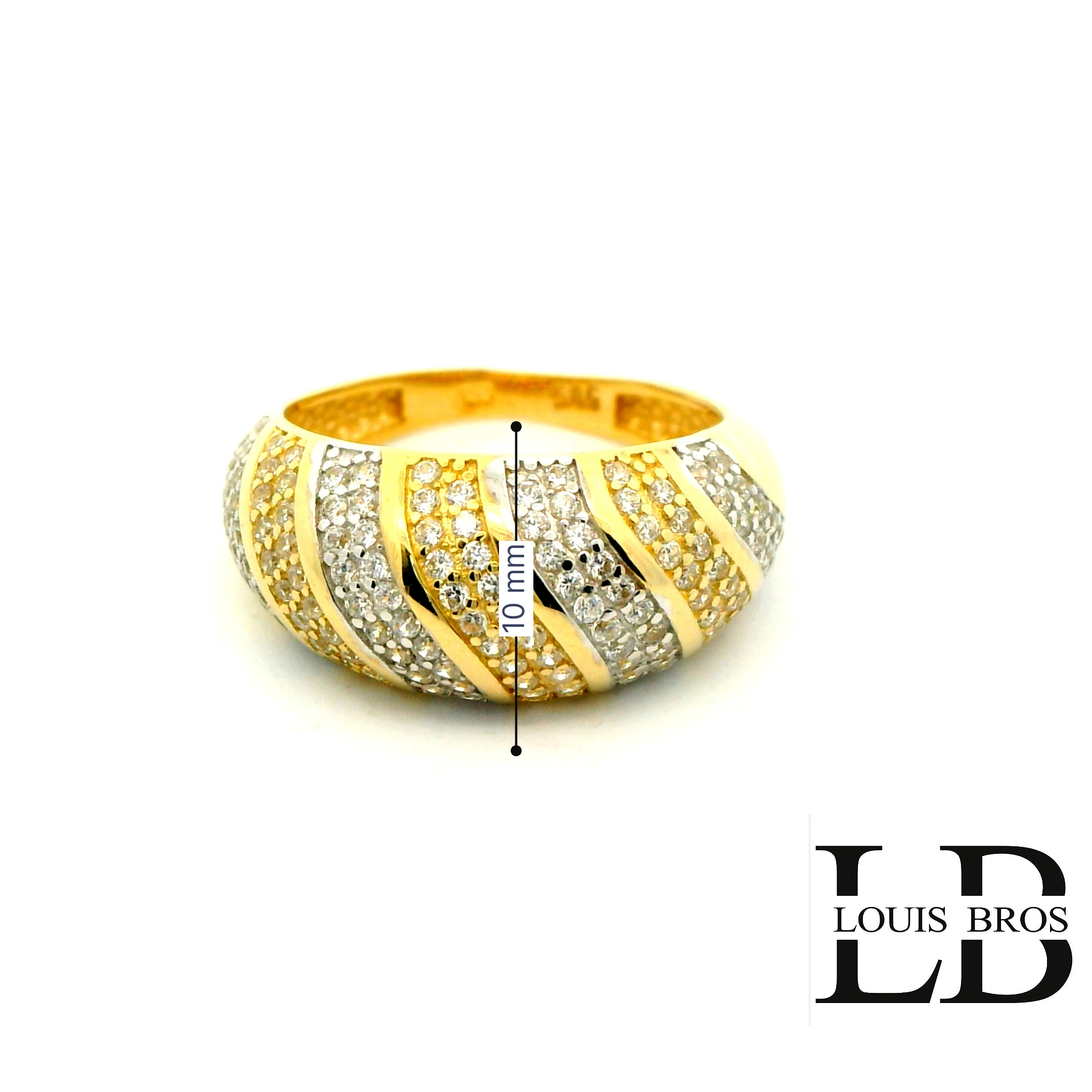 Deze elegante ring is vervaardigd uit 14 karaat bicolor goud (4.64 gr), een stijlvolle combinatie van wit- en geelgoud. Het tijdloze ontwerp wordt verfraaid met sprankelende zirkonia’s, die de ring een luxe en verfijnde uitstraling geven. Dankzij de subtiele glans en het contrasterende kleurenspel van het goud is dit sieraad zowel modern als klassiek, en geschikt voor iedere gelegenheid.