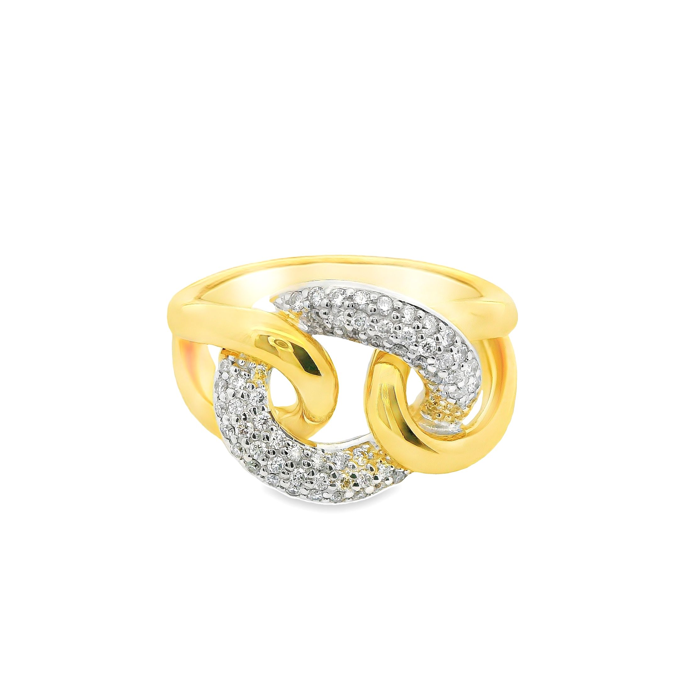 Deze exclusieve ring van Louis Bros is vervaardigd uit 14 karaat bicolor (12 gr.) en is gezet met 44 briljant geslepen diamanten met een totaalgewicht van 0.44 ct. De ring heeft een breedte van 15 mm en dikte van 5 mm. Met deze ring om je vinger ben jij het stralende middelpunt bij elke gelegenheid. Deze ring bestaat uit onze lijn van exclusieve modellen sieraden met prachtige designs en van hoge kwaliteit.
