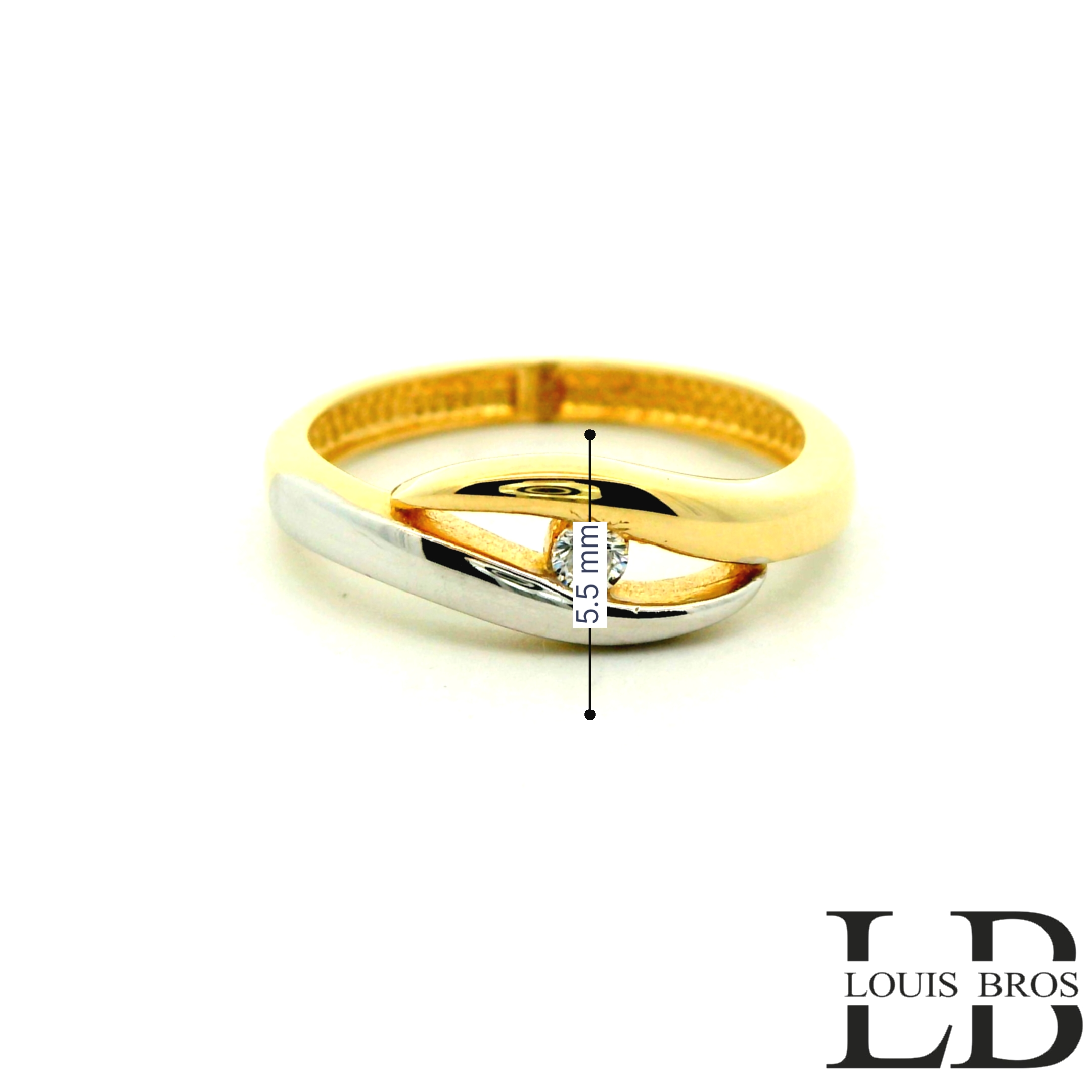 Deze elegante ring is vervaardigd uit 14 karaat bicolor goud (1.90 gr), een stijlvolle combinatie van wit- en geelgoud. Het tijdloze ontwerp wordt verfraaid met sprankelende zirkonia, die de ring een luxe en verfijnde uitstraling geven. Dankzij de subtiele glans en het contrasterende kleurenspel van het goud is dit sieraad zowel modern als klassiek, en geschikt voor iedere gelegenheid.