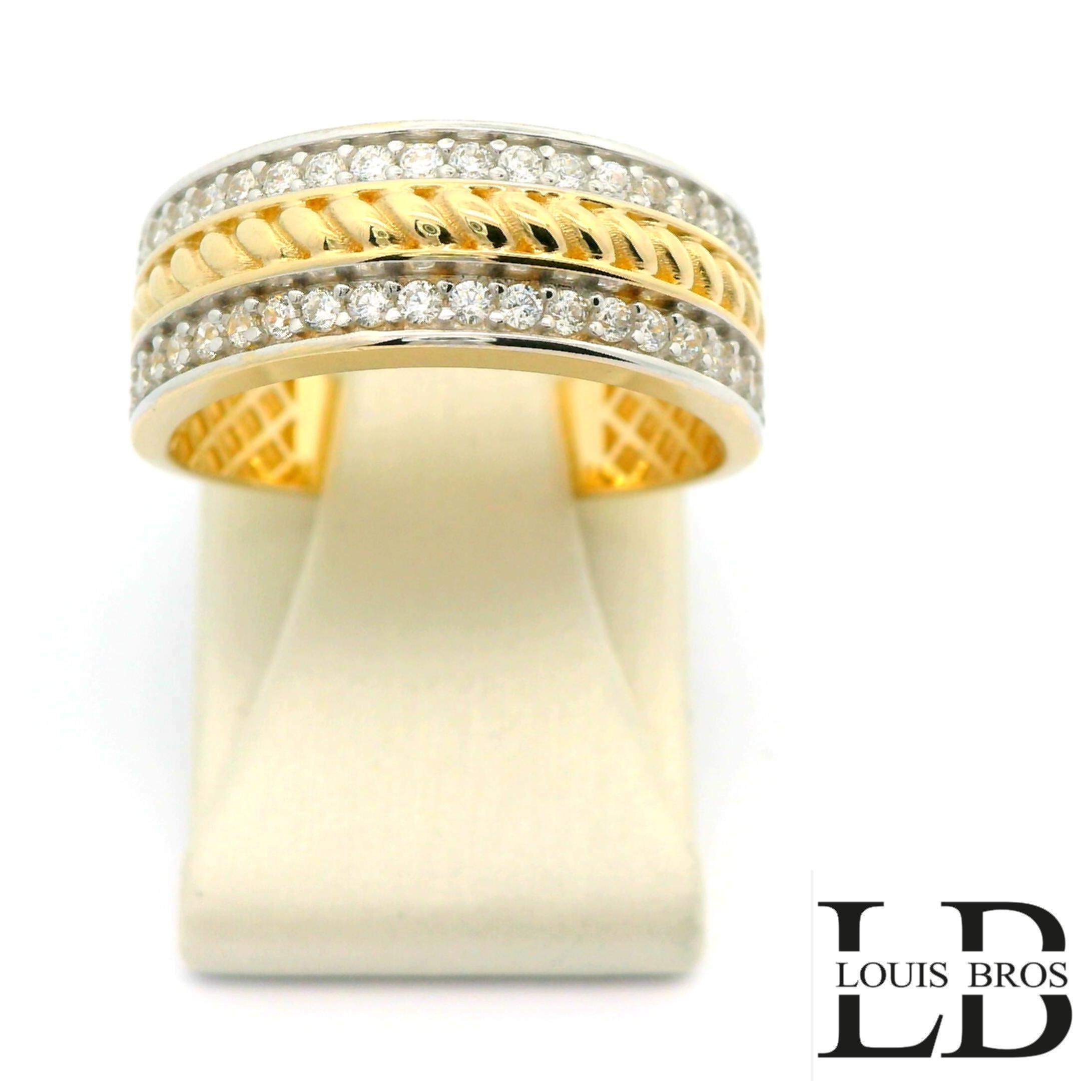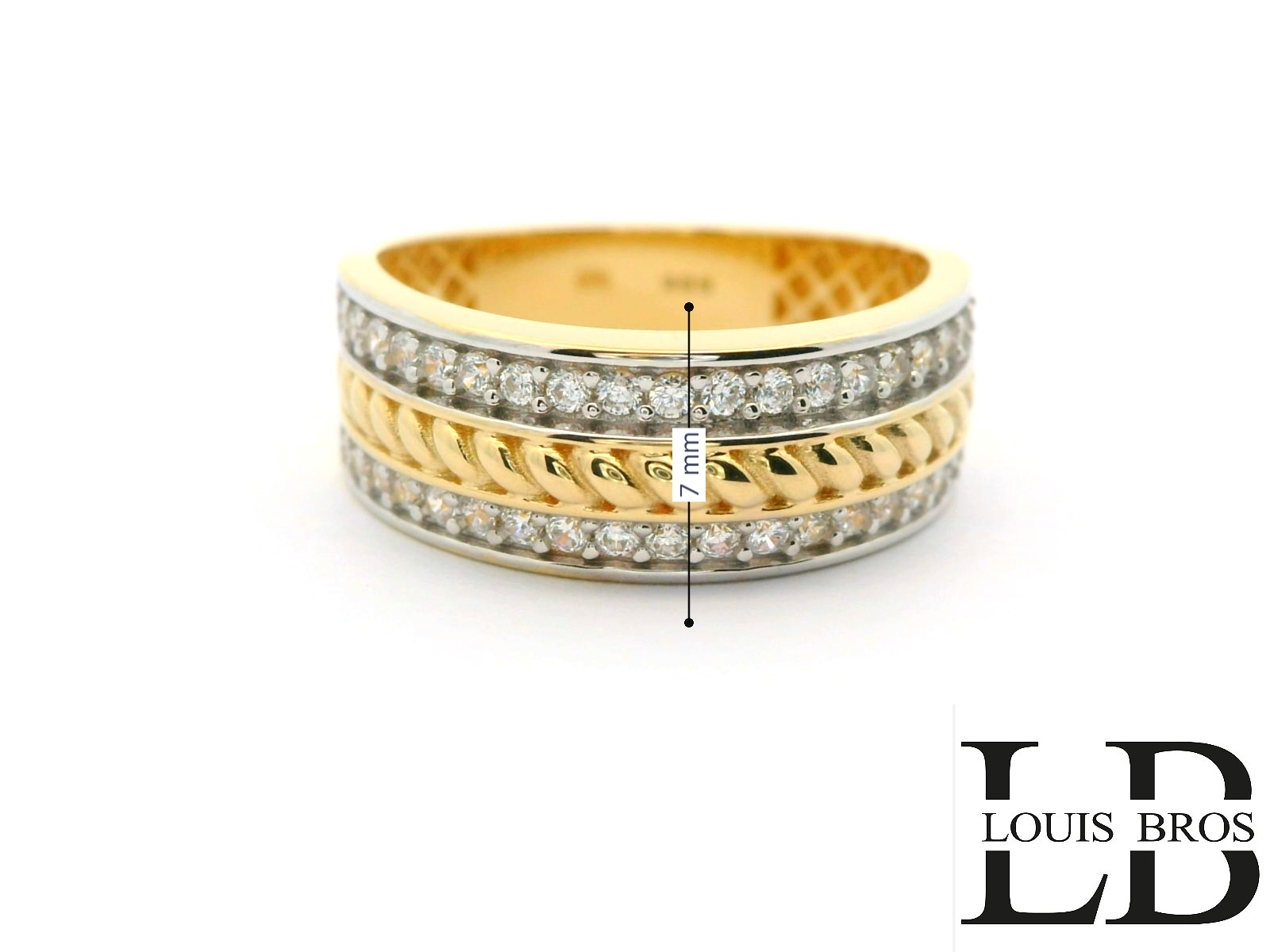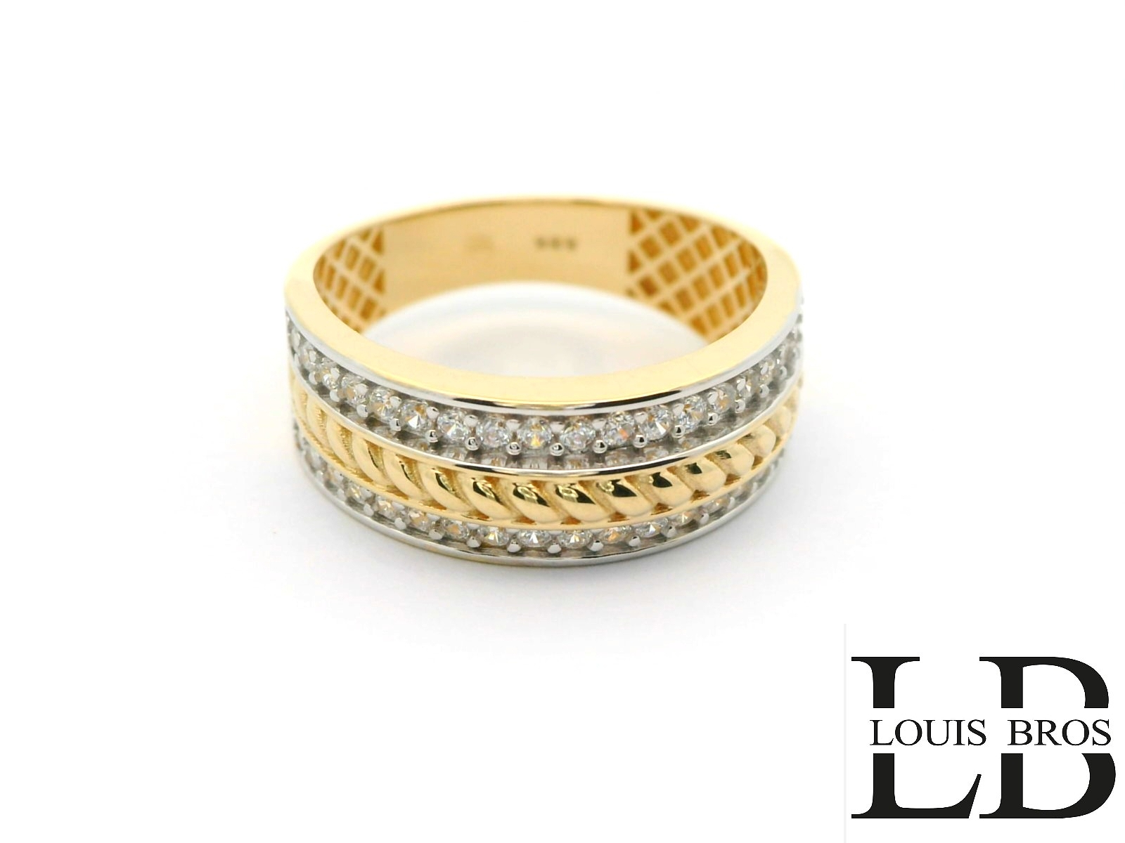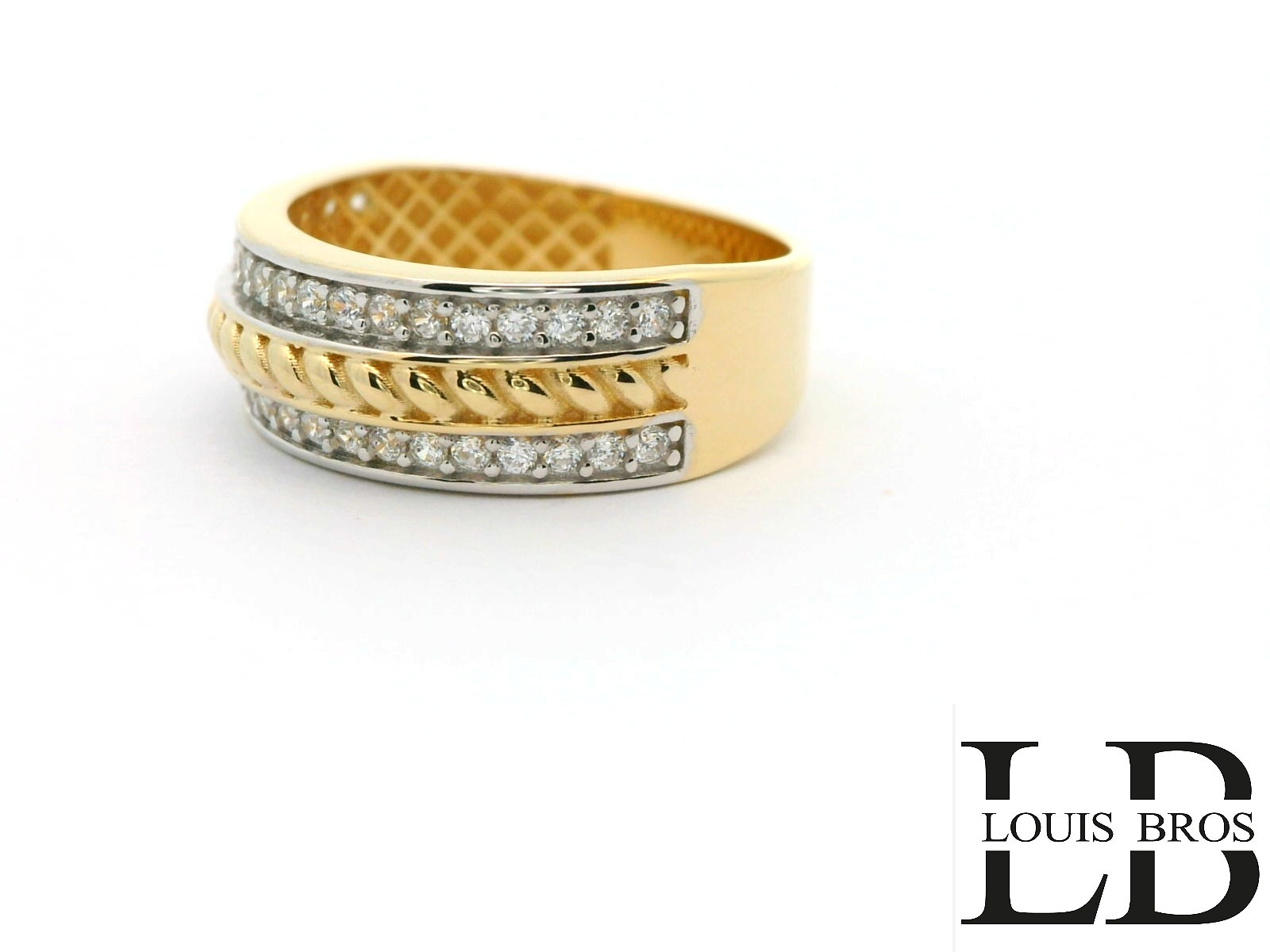 Deze elegante ring is vervaardigd uit 14 karaat bicolor goud (3.48 gr), een stijlvolle combinatie van wit- en geelgoud. Het tijdloze ontwerp wordt verfraaid met sprankelende zirkonia’s, die de ring een luxe en verfijnde uitstraling geven. Dankzij de subtiele glans en het contrasterende kleurenspel van het goud is dit sieraad zowel modern als klassiek, en geschikt voor iedere gelegenheid.