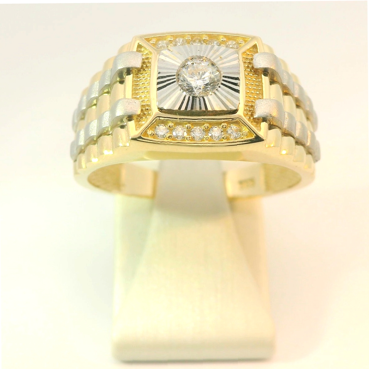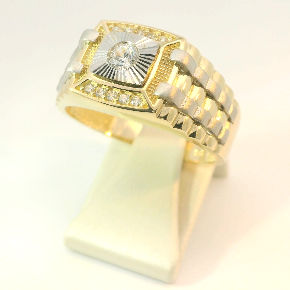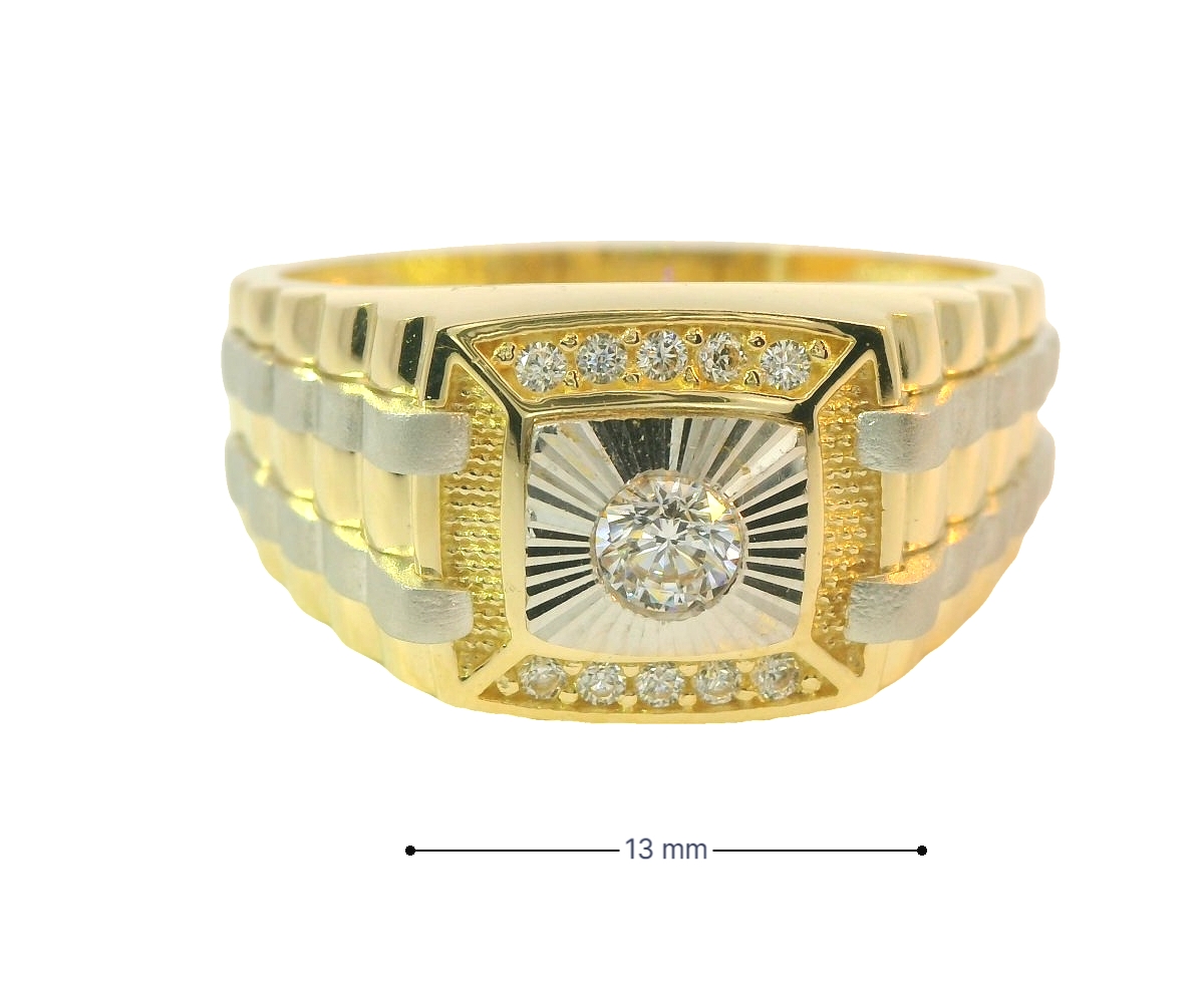 Deze prachtige zegelring voor heren is gemaakt van 14 karaat bicolor goud en is versierd met een glinsterende zirkonia steen. De ring is stoer en elegant tegelijk, perfect voor de moderne man. Combineer hem met een casual outfit voor een trendy look of draag hem als chique accessoire bij een formele gelegenheid. Met deze ring maak je altijd een statement!